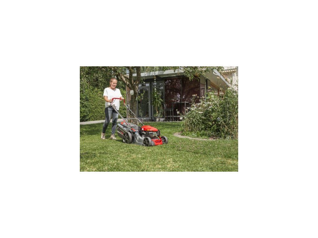 Benzínová sekačka Comfort 46.0 SP-A s pracovní šířkou 46 cm zajišťuje rychlou práci i ve středně velkých zahradách (až do velikosti 1100 m2). Výšku sečení lze nastavit u jednotlivých kol v 7 krocích od 25 mm do 75 mm pro dokonalé přizpůsobení vašim požadavkům. Silný motor AL-KO PRO o výkonu 1,9 kW nabízí vynikající účinnost a nižší spotřebu paliva. Díky 1-rychlostnímu pohonu kol o velikosti XXL, je sečení snadné a bez námahy. Funkce 3INONE umožňuje sečení trávy, sběr a mulčování. Ergonomicky tvarovaná rukojeť zvyšují pohodlí při práci. Díky mimořádně vysokému šasí z ocelového plechu s technologií MaxAirflow, je posekaná tráva dopravována do zadní části sběrného koše o kapacitě 60 l, čímž je docílené dokonalé naplnění koše až po okraj a není nutné tak často sběrný koš vyprazdňovat.