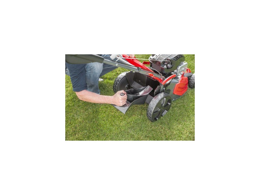 Benzínová sekačka na trávu s pracovní šířkou 46 cm umožňuje efektivní sečení travních ploch až do velikosti 1100 metrů čtverečních. Výšku sečení lze nastavit centrálně v 7 krocích od 30 mm do 80 mm pro dokonalé přizpůsobení vašim požadavkům. Výkon zajišťuje benzínový motor Briggs & Stratton 500 E s 2 kW, který je konstruovaný s ohledem na velkou zátěž a dlouhou životnost. Díky funkci 4INONE lze trávník posekat a dokonale dopravit do sběrného koše o velikosti 65 l, který disponuje ukazatelem stavu naplnění. Další výhodou je možnost mulčování a funkce bočního výhozu. Skvělá aerodynamika sekačky s technologií MaxAirflow zaručuje úplné naplnění koše, což v důsledku znamená, že koš nemusíte vyprazdňovat tak často, jako je tomu u konkurenčních sekaček. Pohodlí při práci zvyšuje ergonomicky tvarovaná rukojeť a XXL kola s kuličkovými ložisky a jednorychlostním pohonem.
