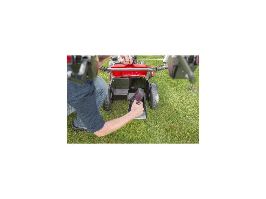 S řeznou šířkou 46 cm zajišťuje benzinová sekačka na trávu Premium 470 SP-A rychlý pokrok i ve středně velkých zahradách (až do 1400 m²). Výška sečení se nastavuje centrálně až v 7 krocích od 30 mm do 80 mm. Motor AL-KO Pro 170 o výkonu 2,6 kW s technologií OHV dosahuje vynikající účinnosti. Díky 1-rychlostnímu pohonu kol a XXL hladkým běhům kol je pokrok v zahradě bez námahy. Funkce 4IN1 nabízí sečení, chytání, mulčování a boční vyhazování trávníku. Ergonomicky tvarovaná řídítka a snadno zavěšitelná záchytná schránka zvyšují pohodlí při práci. Odřezky trávy se dostávají skrz extra vysoký kryt z oceli s technologií MaxAirflow zpět do 70 l velkého sběrného koše s ukazatelem plnosti.