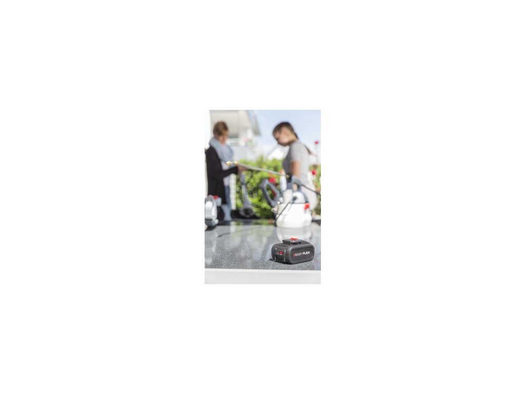 Akumulátor 20 V / 5,0 Ah, Li-Ion z řady EASY FLEX. Lehký a kompaktní akumulátor zajistí provoz Vašich přístrojů EASY FLEX až po dobu 80 minut (v závislosti na druhu přístroje a dalších faktorech).