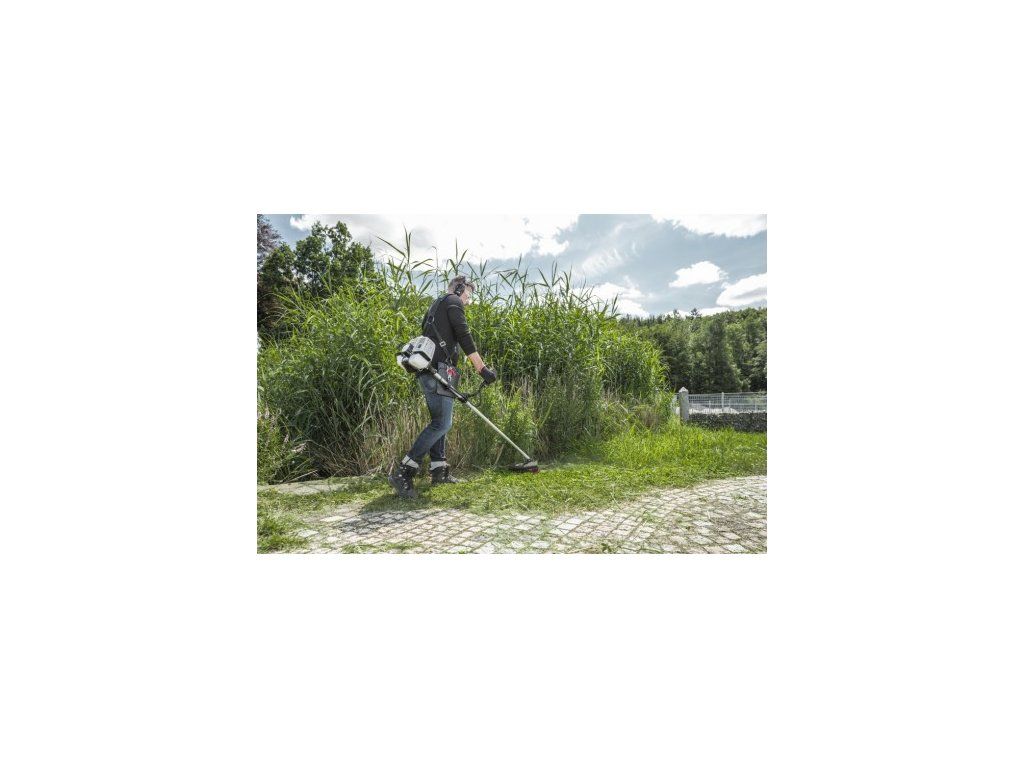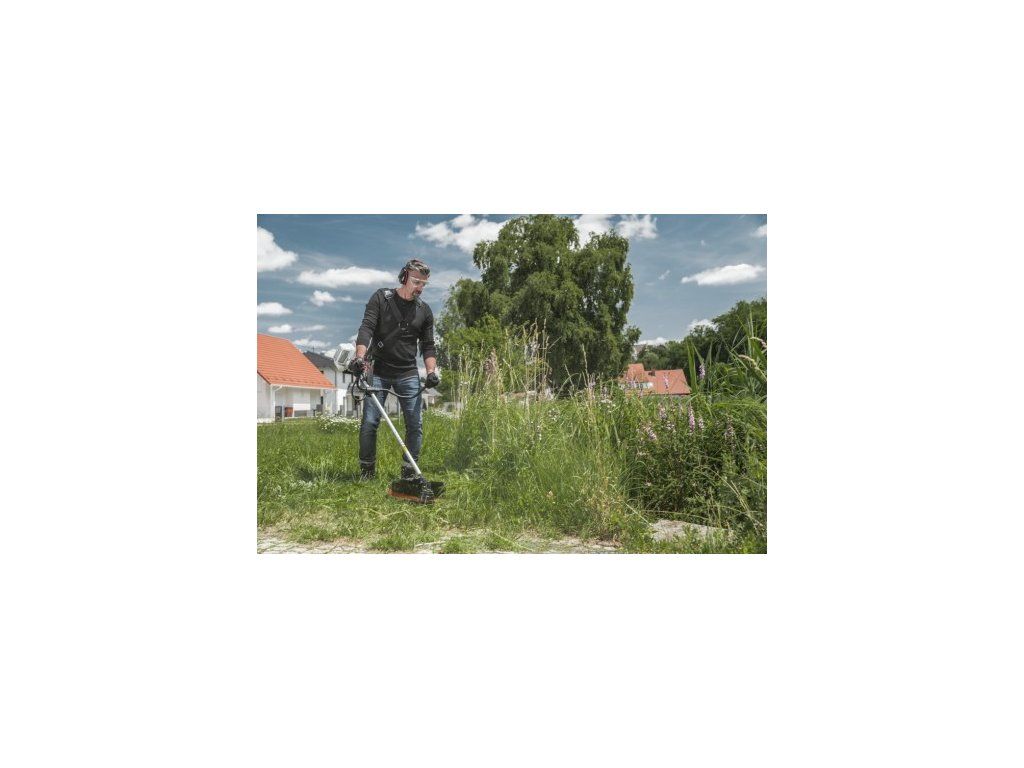 Všestranný díky vyměnitelné řezací hlavě: Jemná linie se šířkou řezu 41 cm je v žádném okamžiku nahrazena přiloženým 25 cm kovovým nožem - pro snadný přechod světlem do obtížného terénu! Snadná manipulace s kosou a nastavitelným polstrovaným dvojitým ramenním popruhem s ochranou kyčle zajišťuje efektivní práci a rychlé výsledky sečení v oblasti i na plotech a stěnách. S automatickým hrotovým systémem můžete snadno nastavit optimální délku niti při sečení jednoduchým poklepáním na zem sekací hlavou (kromě operace nože).