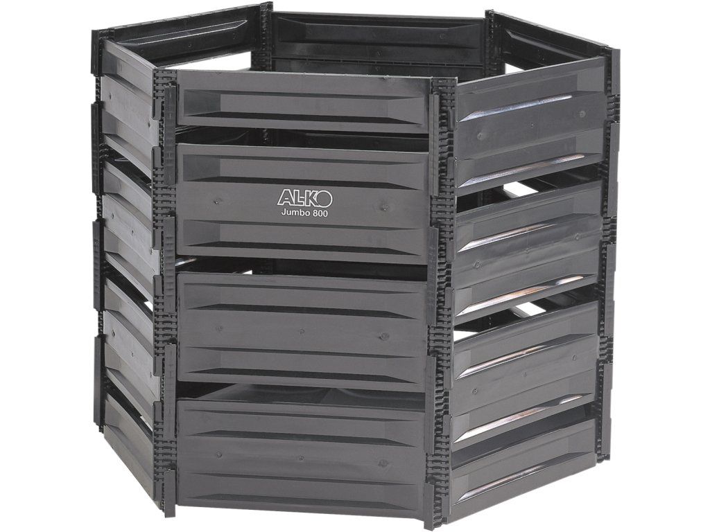 Technické detaily kompostéru AL-KO Jumbo 800 Kompostér se skládá z recyklovaného plastu o objemu 800 l. Šestihranný tvar 16 kg kompostéru se rychle sestaví díky zásuvnému systému. Koupit nyní: Kompostér AL-KO Jumbo 800