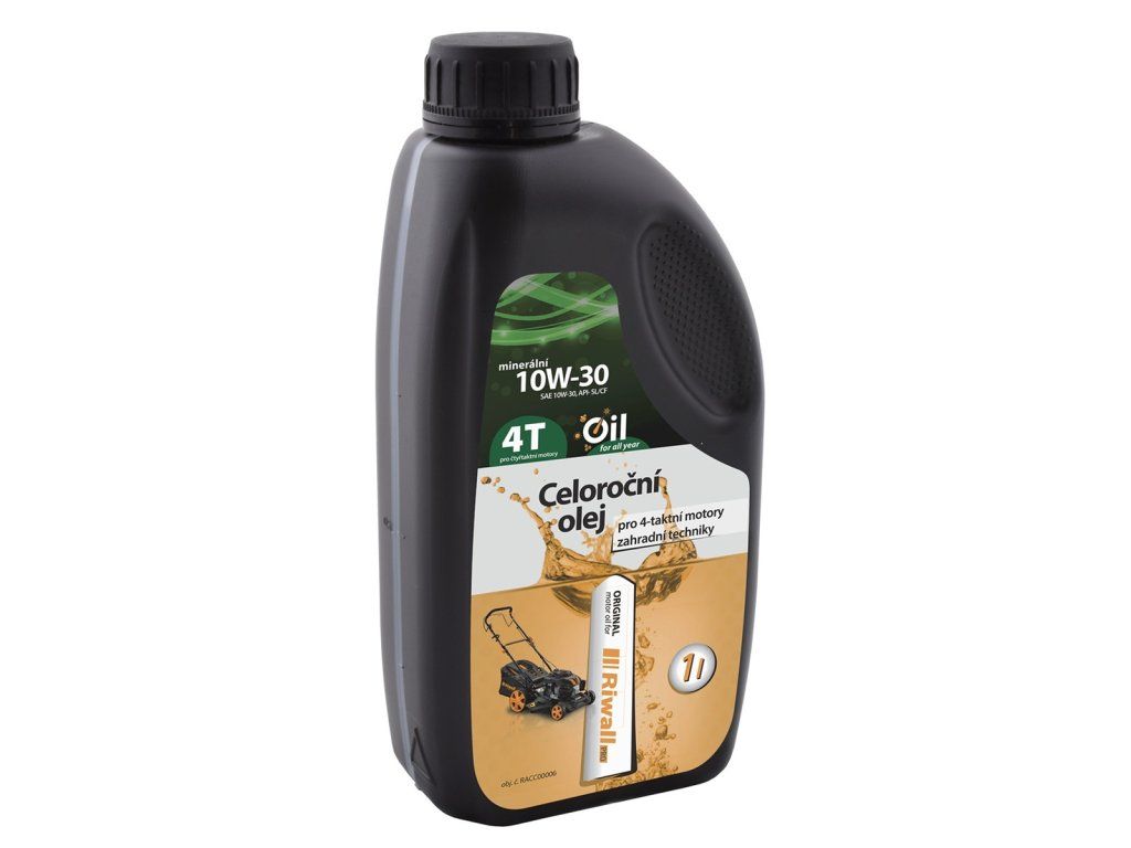 Celoroční olej Riwall pro 4-taktní motory (1 l, SAE10W-30)Kvalitní celoroční motorový olej Riwall pro mazání 4-taktních motorů zahradní techniky, sněhových fréz apod. Obsah 1 l.