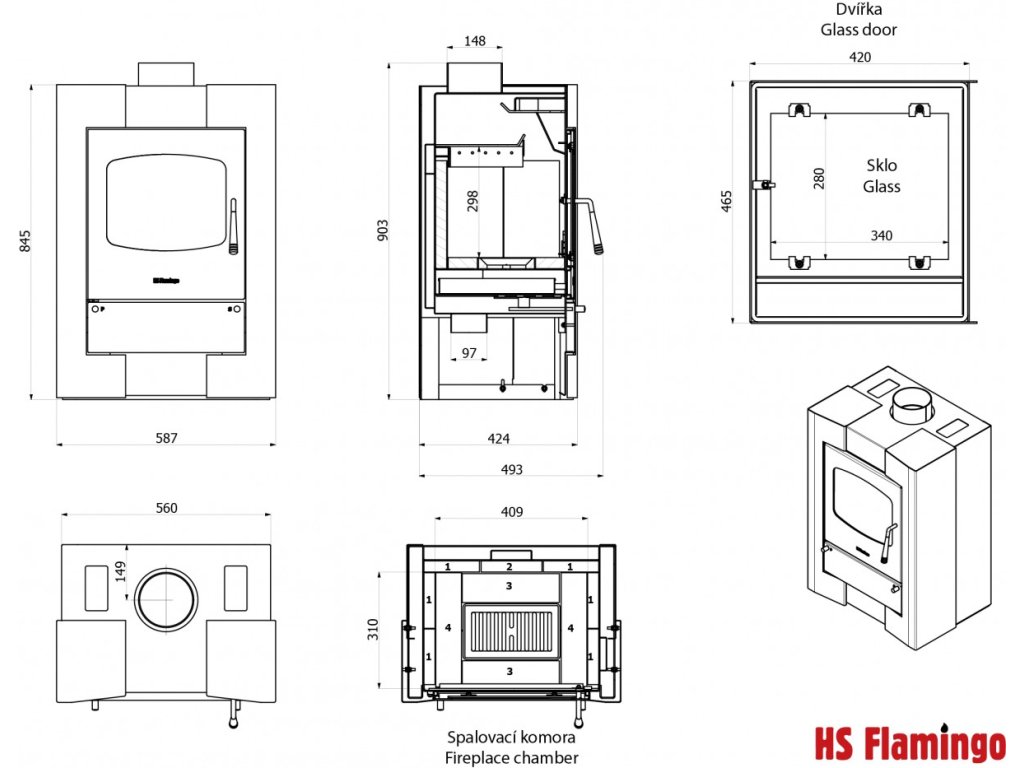 | Rozměr topeniště (Š x V x H): | 405 x 280 x 310 mm |
