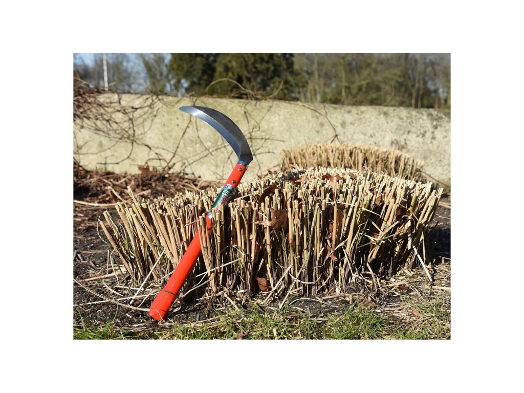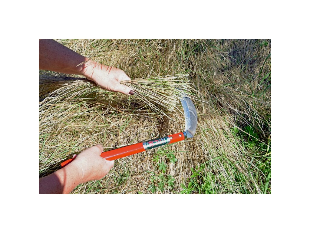 Zakřivená čepel o délce 150 mm je vyrobena z kvalitní japonské oceli a má tloušťku 2 mm. Dvojitě broušené ostří zaručuje hladký a efektivní řez, ať už se jedná o posekání trávy, plevele, nebo sklizeň květin. Díky své pevnosti je srp dostatečně silný i pro náročnější úkoly. Rukojeť z pevného dřeva má délku 335 mm a je opatřena červeným nátěrem, takže je srp snadno viditelný i v husté vegetaci. S celkovou hmotností pouhých 182 g je práce s ním pohodlná i po delší dobu.