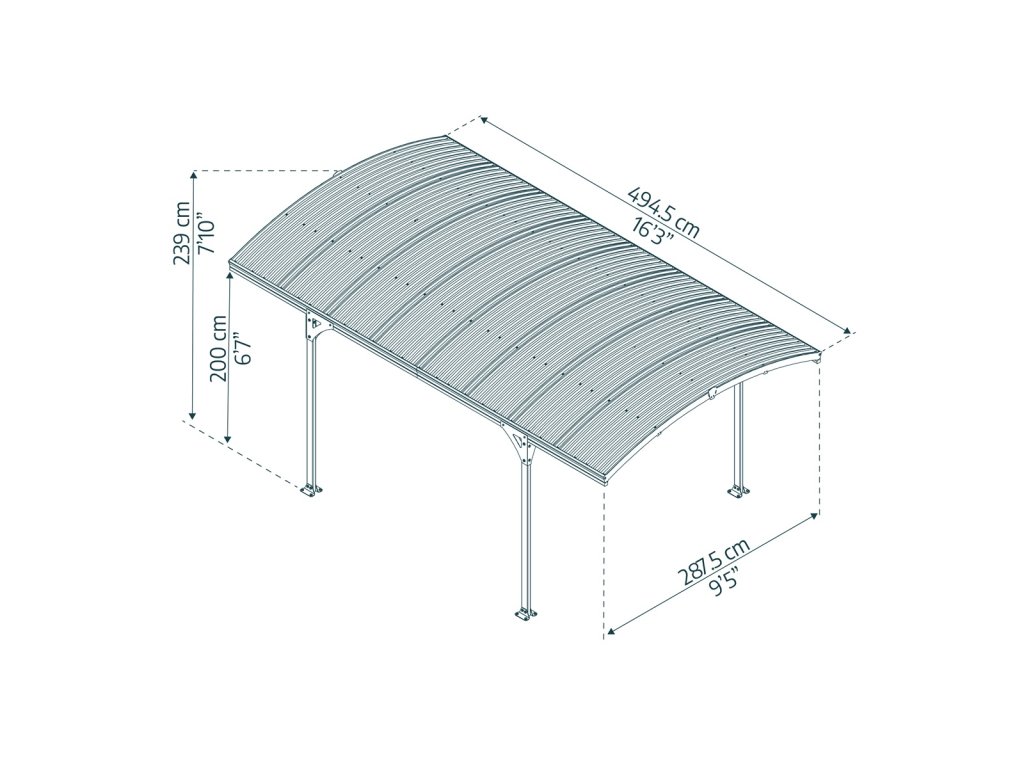 | Rozměry přístřešku (D x Š x V): | 494,5 x 287,5 x 239 cm |