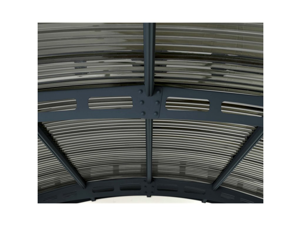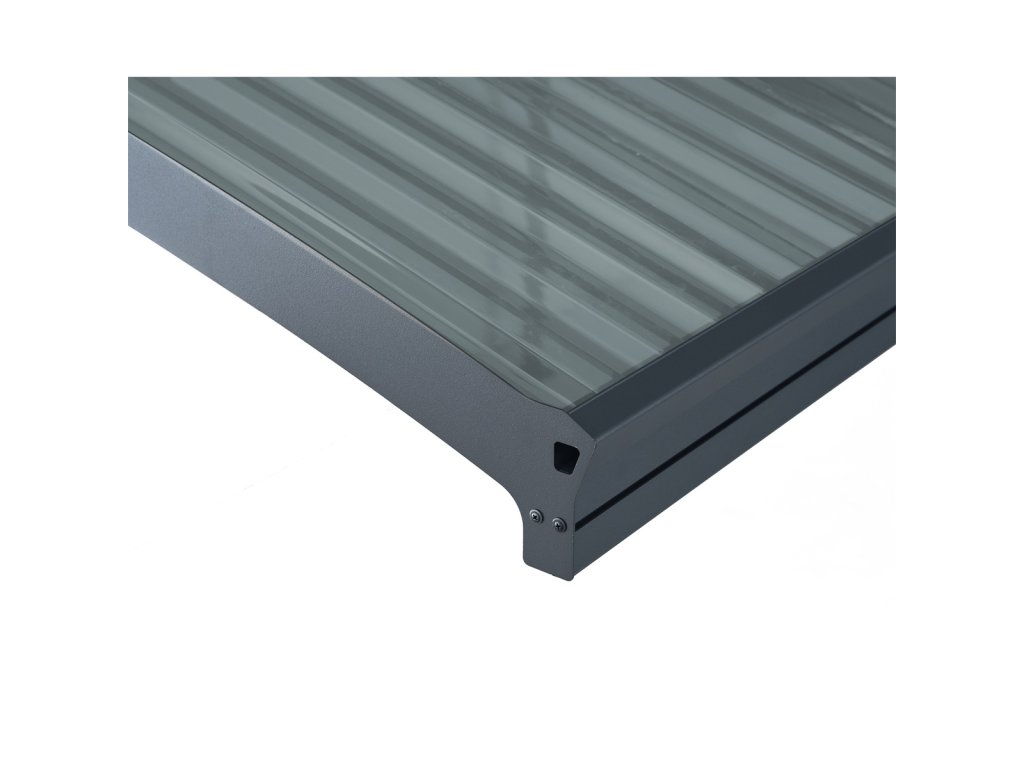 | Materiál desek (střecha): | Suntuf Solar, šedý, žlábkovaný profil, 10% propustnost světla, 100% UV ochrana |