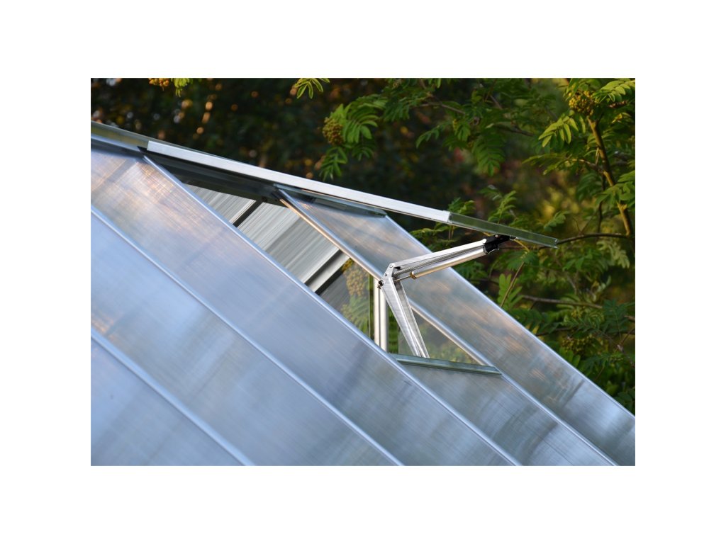 Automatický otvírač střešního oknaBezúdržbový systém, který nevyžaduje žádné baterie, pracuje na bázi roztažnosti látky podobné parafinu, takže z něho nemůže uniknout plyn, jako třeba z plynových vzpěr. Systém automatické ventilace slouží k zamezení přehřátí nebo naopak podchlazení rostlin a to i v situaci, že nejste doma. Systém začíná automaticky otevírat střešní okno při teplotách kolem 12-15°C. Plného otevření se potom docílí při teplotách okolo 30°C. Při ochlazení systém okno automaticky uzavře. Celý systém je velmi robustní s velmi dlouhou životností. V případě potřeby se dá ovládat i manuálně. Výhodou automatického ovládání je i to, že teplota je regulována průběžně po celý den (i když jste v práci) a nedochází k situacím, že je skleník přehřátý a je ho nutné rychle odvětrat. Otvírač je určen pouze pro skleníky značky Palram.