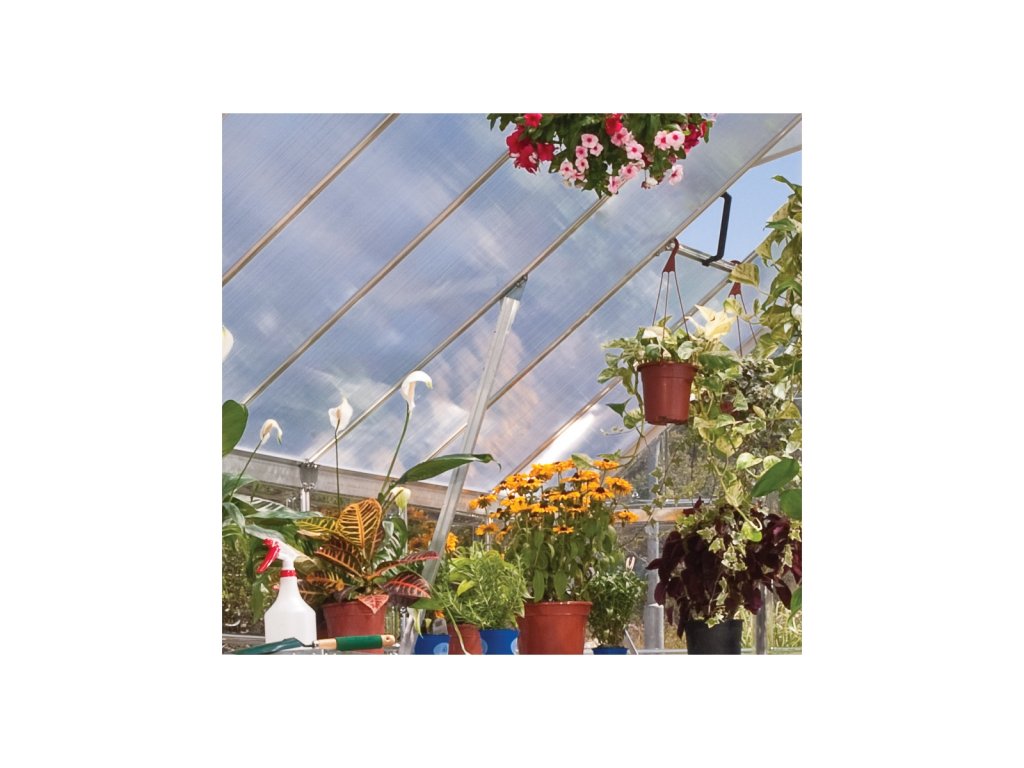 • Lehké, nerozbitné polykarbonátové panely. Jsou odolné nejen proti běžnému mechanickému poškození, vznikající při práci ve skleníku, okolo něj či při sportovních aktivitách na zahradě, ale bez problémů odolají i veškerým nástrahám počasí včetně krupobití. Jelikož jsou vyrobeny ve špičkové kvalitě největším výrobcem na světě – společností Palram, nezmění své vlastnosti ani zabarvení po desítky let.