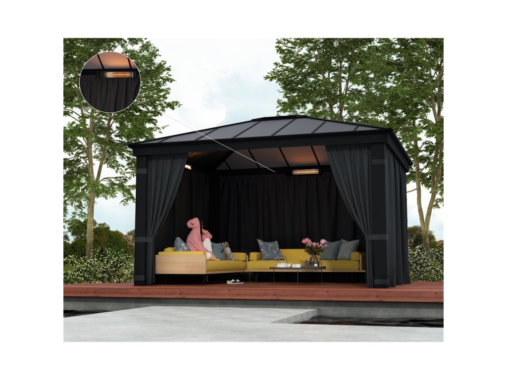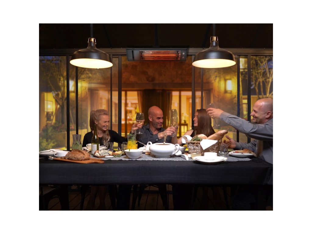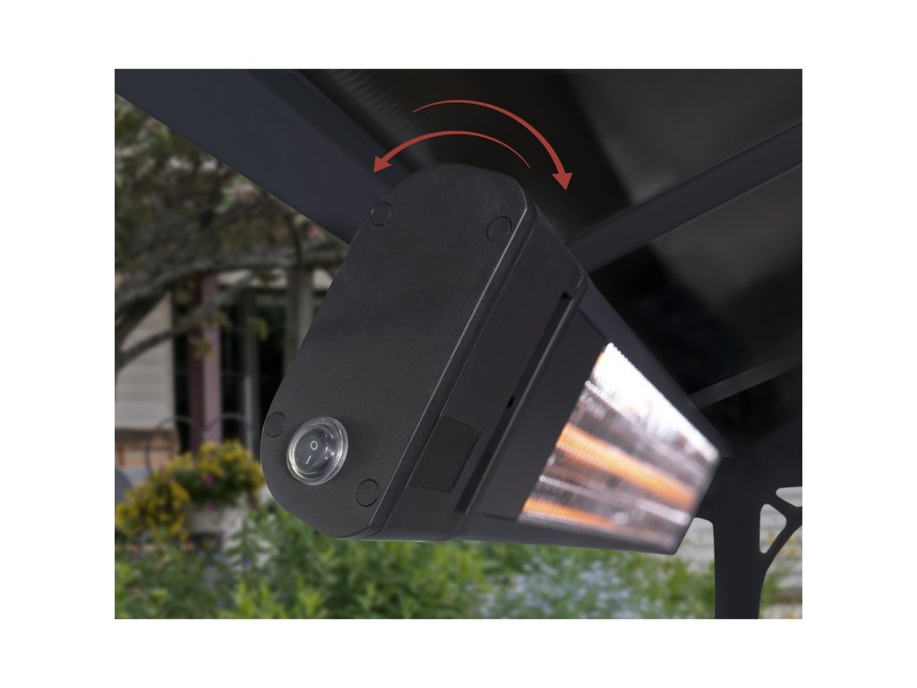 Infračervené topidlo 1800 WVýkonné topidlo v odolném hliníkovém rámu, hliníkovou odraznou deskou a vysoce účinným topícím prvkem s karbonovými vlákny je vhodným doplňkem každé pergoly nebo altánu od Canopie. Dodává se včetně nastavitelného držáku a montuje se přímo do drážek v profilech rámu. U větších rozměrů pergol není problém osazení více topidly. Dosah topidla je až 3,5 m a díky infračervené technologii není tepelný přenos ovlivňován větrem.