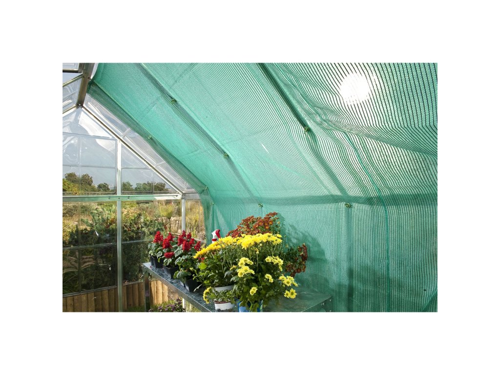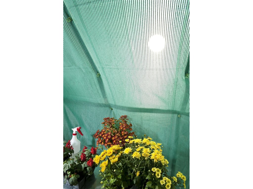Na ochranu rostlin, které nevyžadují přímý sluneční svit nebo na ochranu rostlin přes přílišným horkem, je možné použít lehkou textilní zástěnu, která pohltí až 70% prudkého slunečního záření. Zástěna má rozměr 230 x 265 cm a jednoduchým mechanismem se upne ke stěnám skleníku.Doplňkové parametry