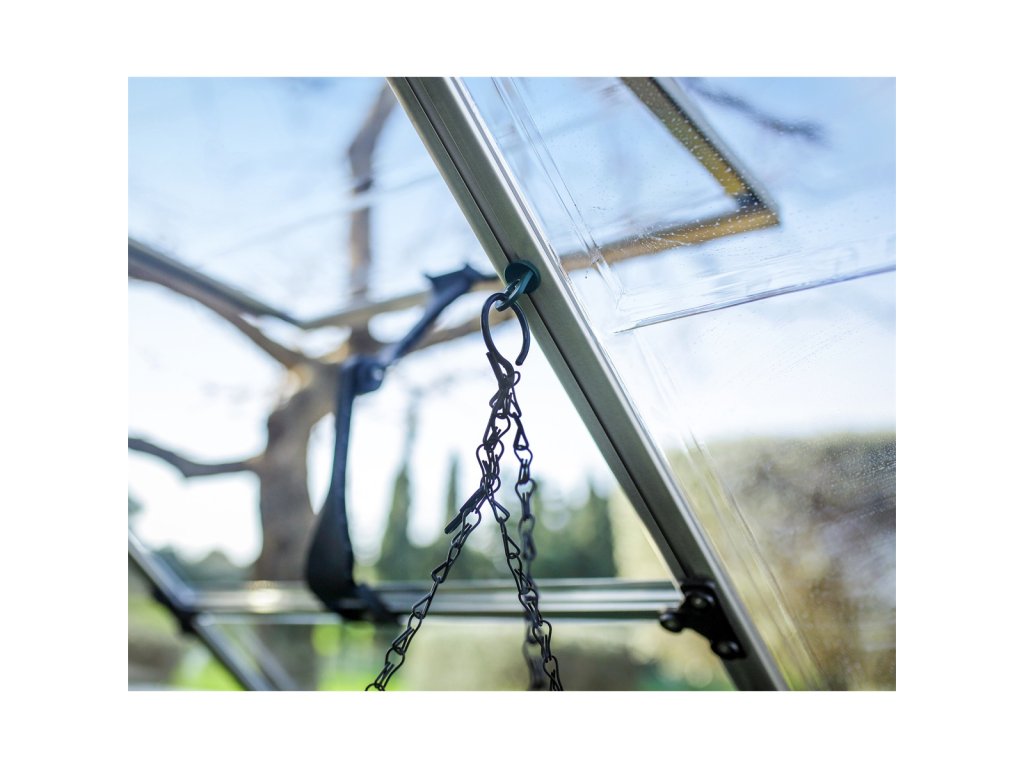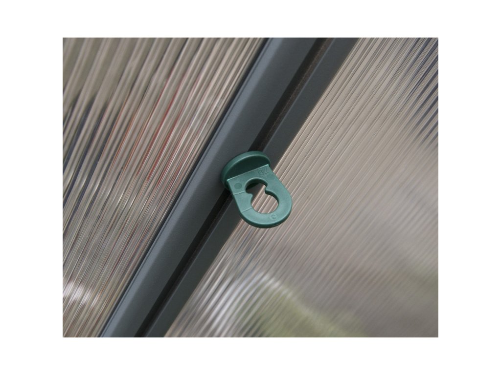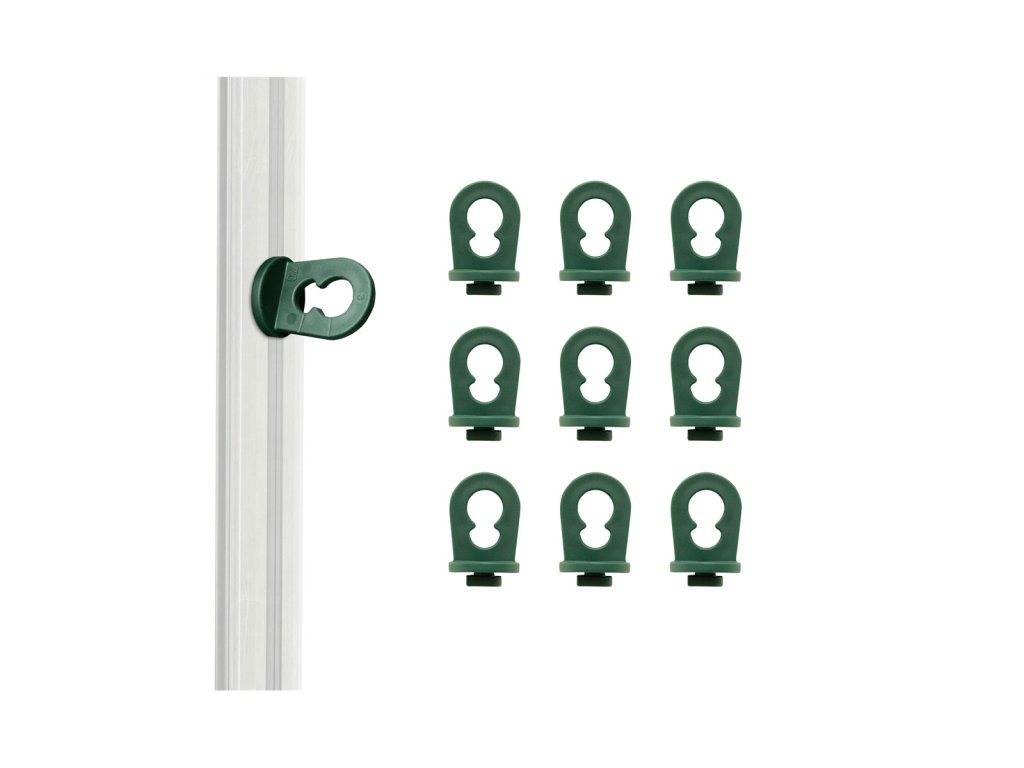 Sada 10-ti háčkůSada obsahuje 10 kusů velmi praktických háčků. Ty se mohou využít jako závěsy na ozdobné květníky, jako úchyty pro popínavé rostliny nebo třeba jako úchyty pro stínící síť. Instalace je velmi jednoduchá - zasadit do vnitřní drážky konstrukce skleníků Palram a otočit. To je vše. Můžete si tedy vybrat přesně to místo, které Vám nejvíce vyhovuje.