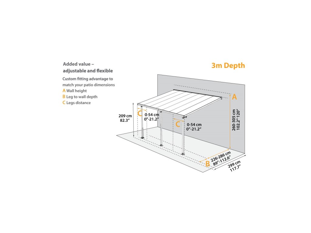 | Rozměry přístřešku (D x Š x V): | 425 x 226-286 x 260-305 cm |