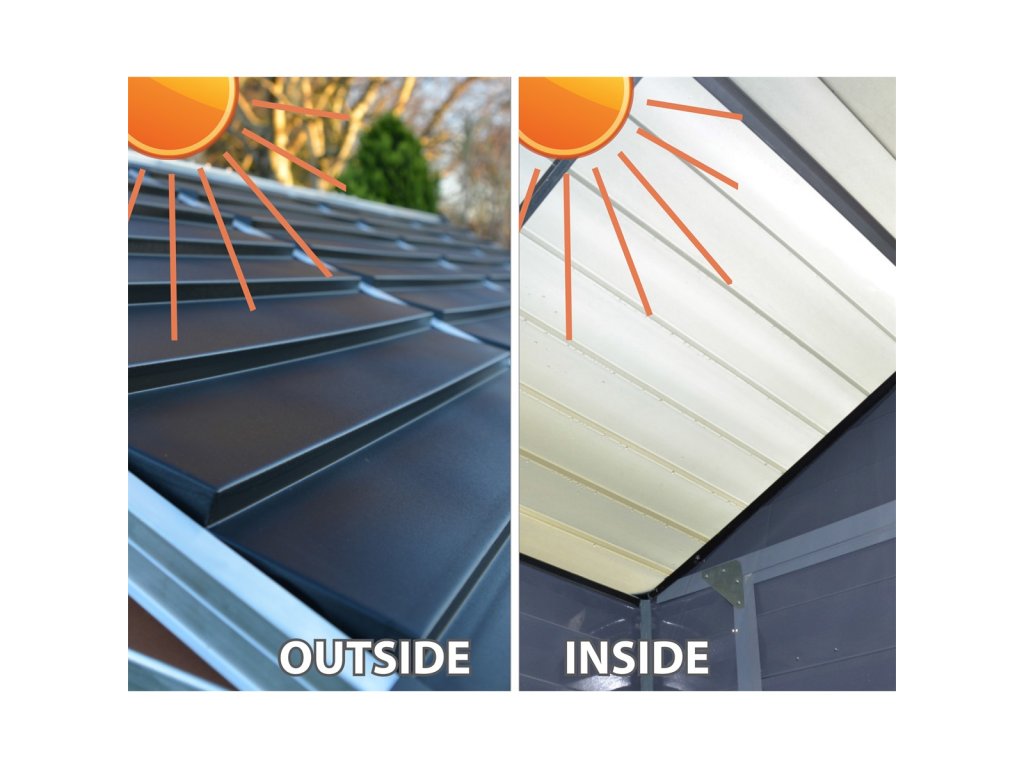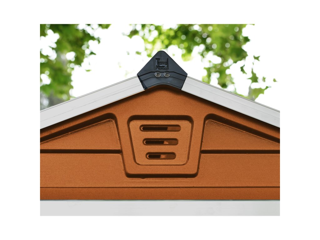 • Prakticky nerozbitné stěny i střecha z polykarbonátu s UV ochranou. Na rozdíl od běžných plastových domků z polyethylenu PE nikdy nezkřehnou a bez problémů odolají změnám teplot, přívalům sněhu nebo krupobití. Oproti plechovým domkům nikdy nereznou a stěnu nelze prakticky promáčknout či jinak poškodit. Není je potřeba ani natírat, či se bát plísně a hniloby jako u dřevěných domků.