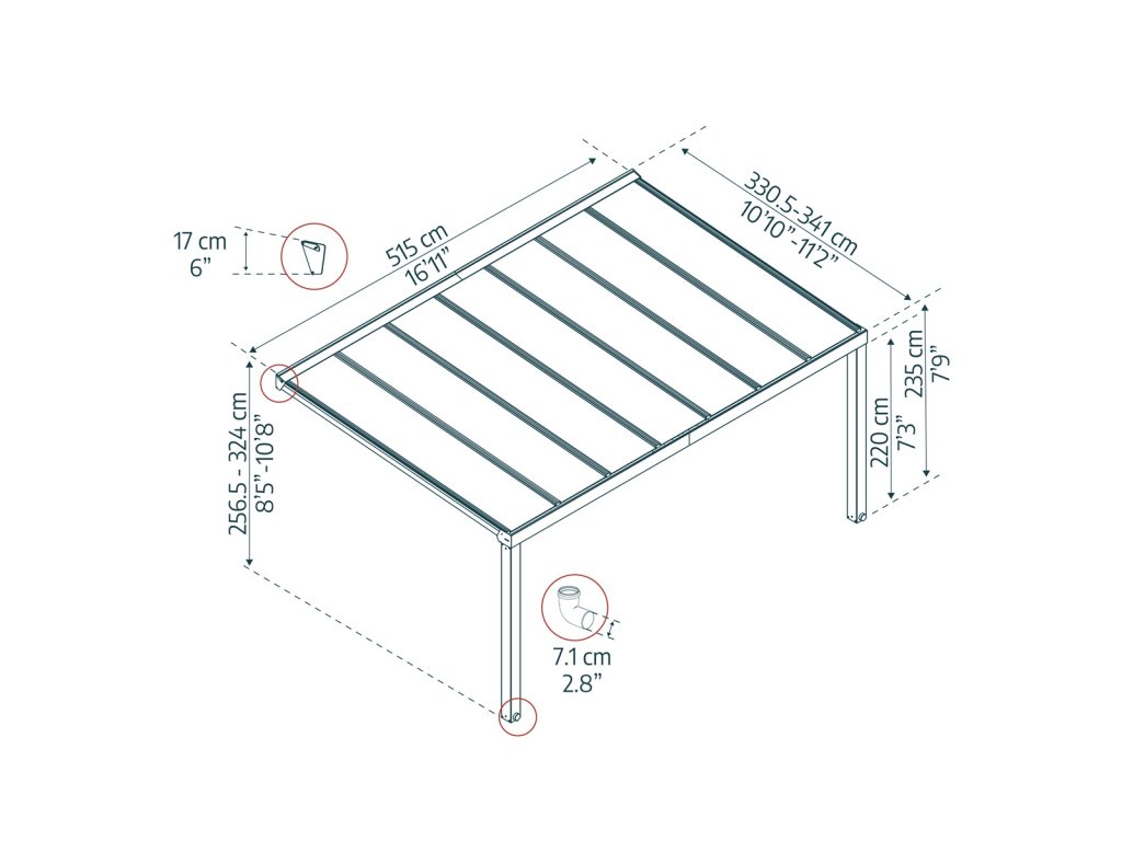 | Rozměry přístřešku (D x Š x V): | 515 x 330-341 x 256-324 cm |