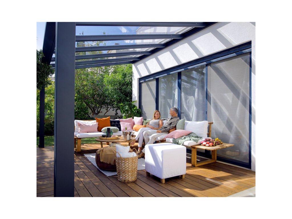 Luxusní hliníková pergola s okouzlujícím moderním designem, robustní konstrukcí a dechberoucími křišťálově čirými střešními panely