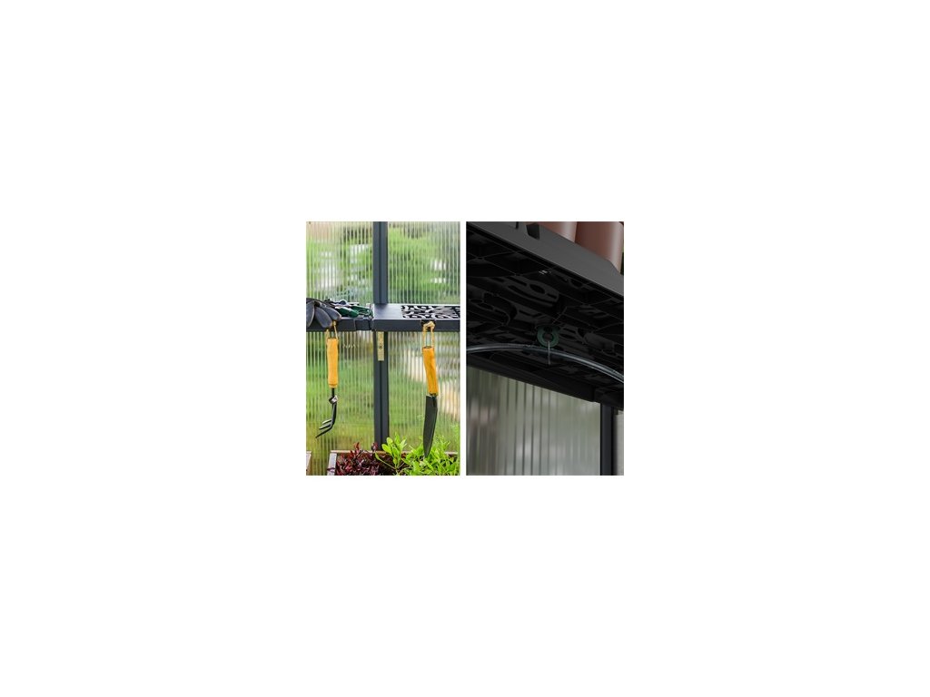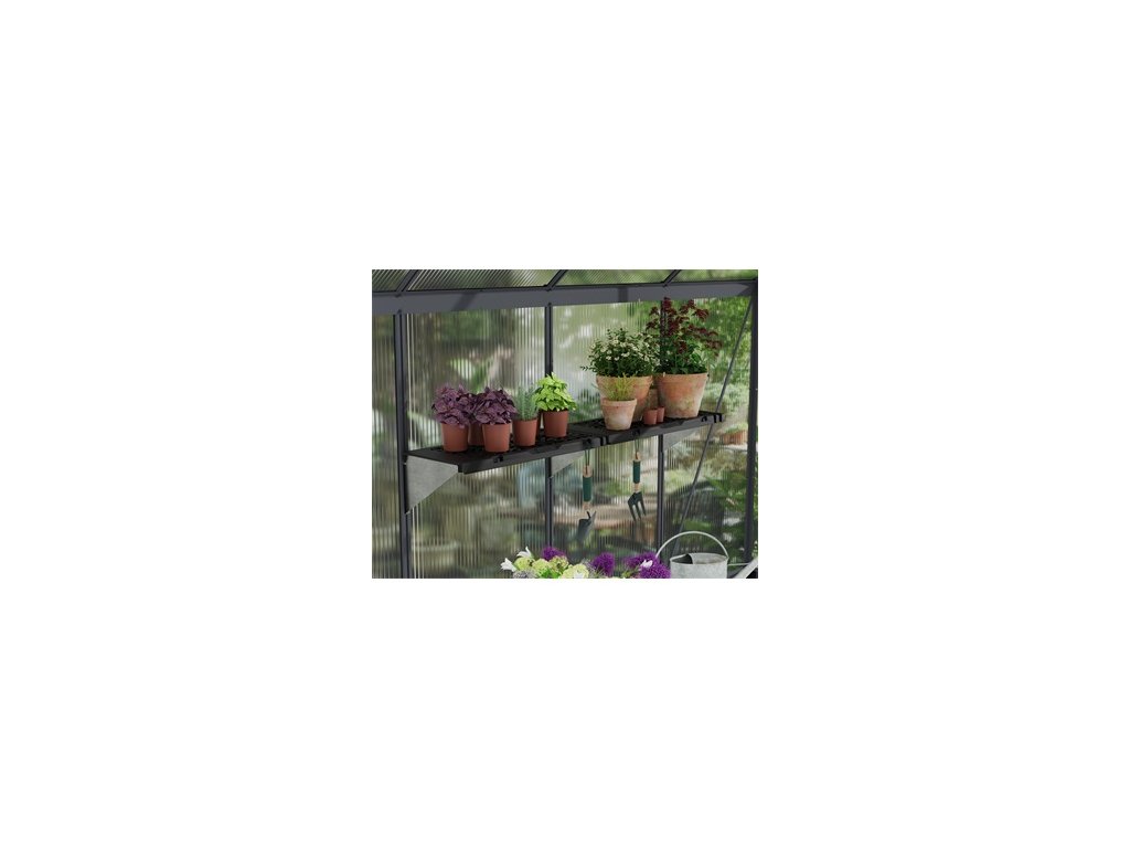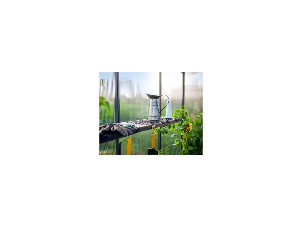 Univerzální police – set 2 ksSet polic se skládá ze 2 kusů. Každá má rozměr 62,5 x 26 cm a nosnost 20 kg. Police jsou ideální způsob, jak zlepšit organizaci ve svém skleníku, zvětšit užitný prostor a omezit námahu při pravidelné péči o rostliny v květináči. Systém uchycení poliček je velmi jednoduchý a využívá drážky, které jsou zevnitř na rámu skleníků Palram. Můžete si tedy vybrat, kam chcete poličky umístit a rovněž i to, zda vytvoříte jednu dlouhou nebo police umístíte každou zvlášť. Police mohou být v závislosti na vašich potřebách během sezóny kdykoliv jednoduše přemístěny na jiné místo skleníku. Balení obsahuje vše potřebné - 2 police, podpěry a spojovací materiál.