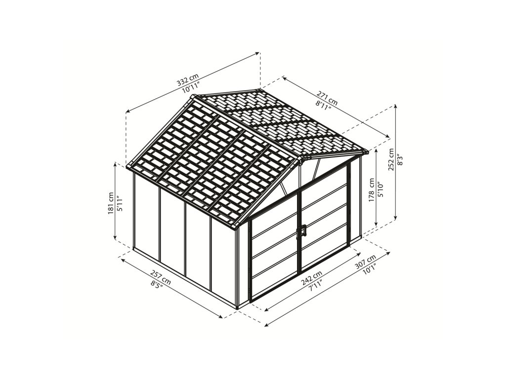 Palram - Canopia Yukon 11' x 9' antracit - heavy duty prostorný domek s možností dalšího rozšíření (základní modul)