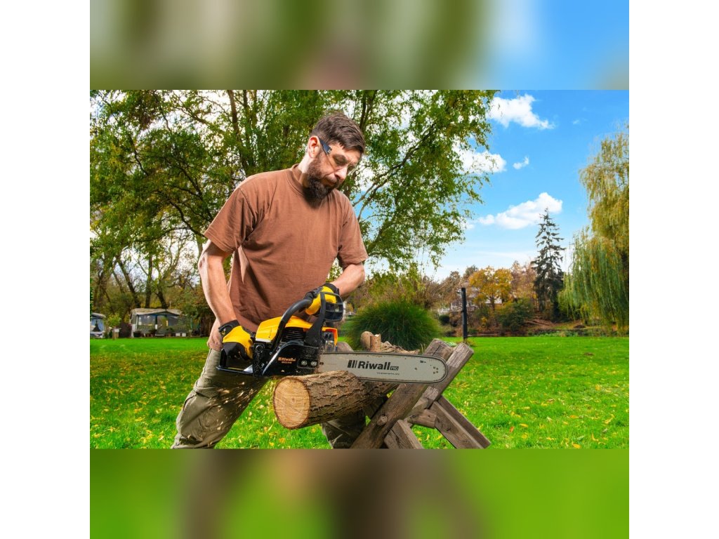 Riwall PRO RPCS 5140 SET - řetězová pila s benzinovým motorem 49 ccm + náhradní řetěz + rukavice + ochranné brýle