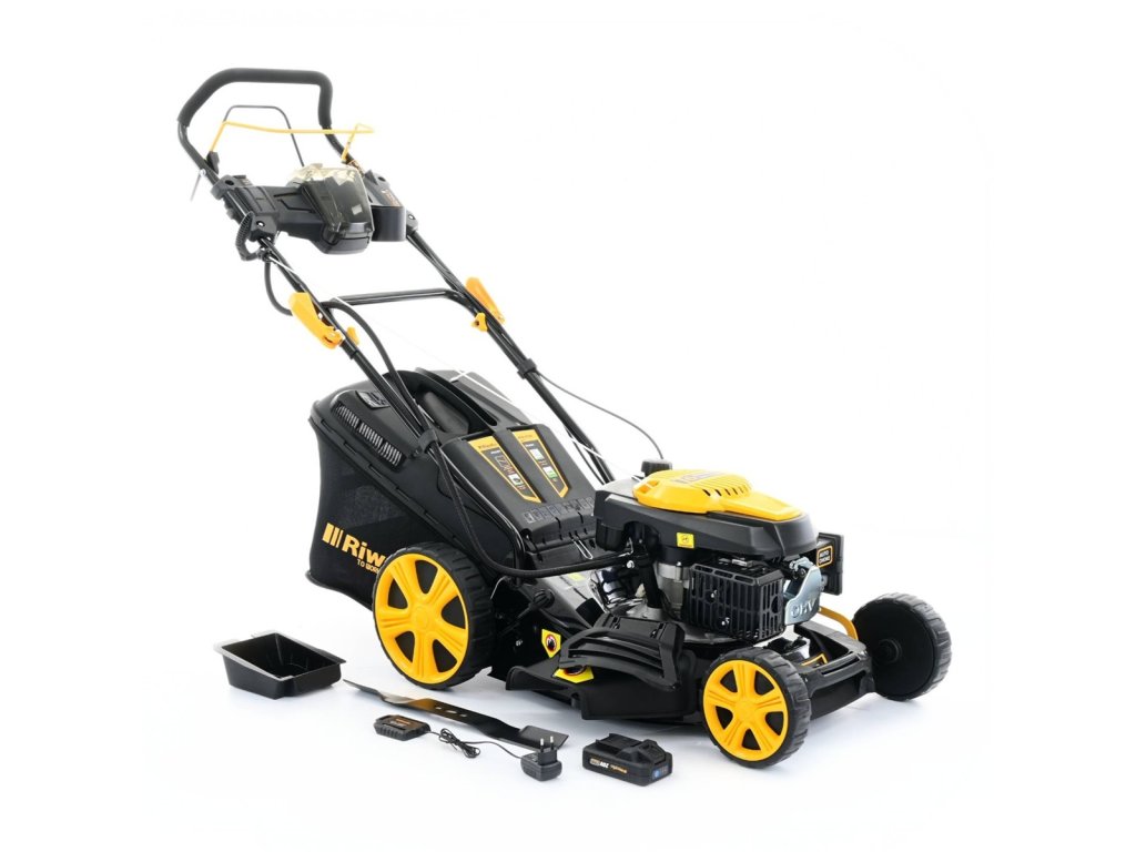 Riwall PRO RPM 4735 E - multifunkční travní sekačka 4 v 1 s benzinovým motorem, pojezdem a elektrostartem