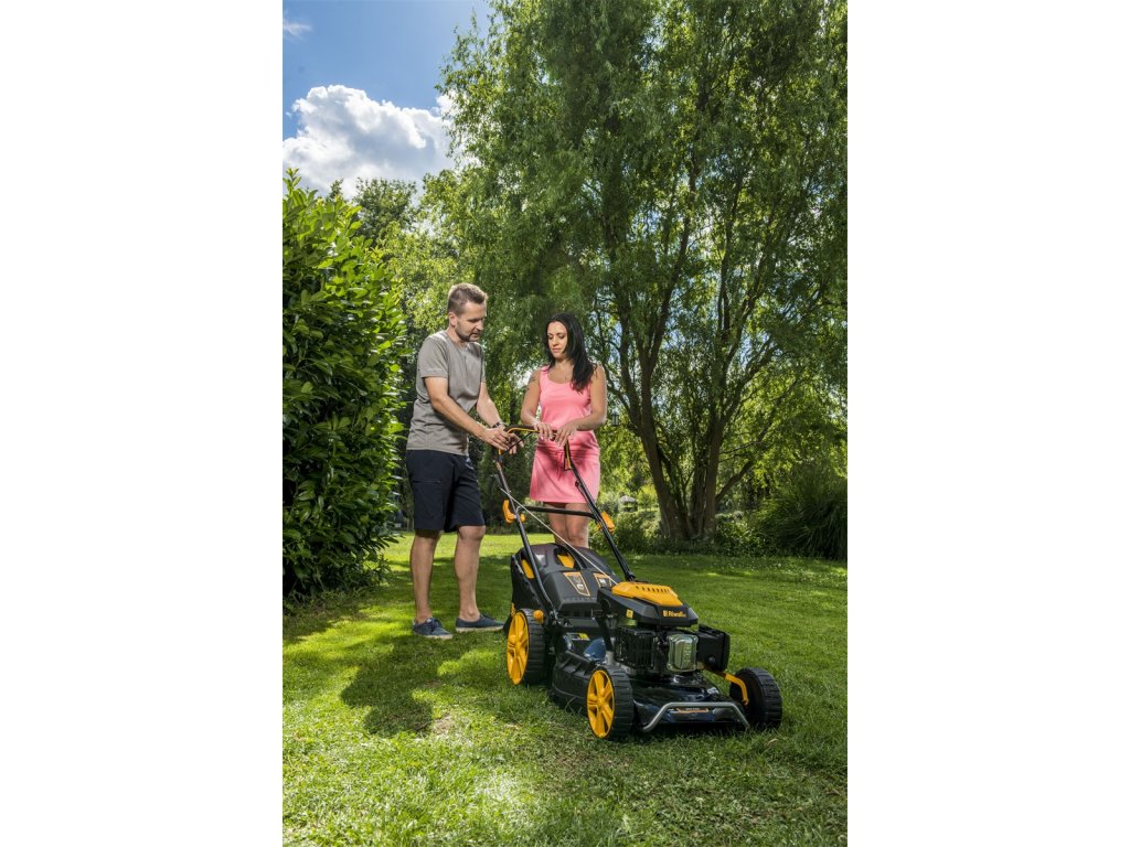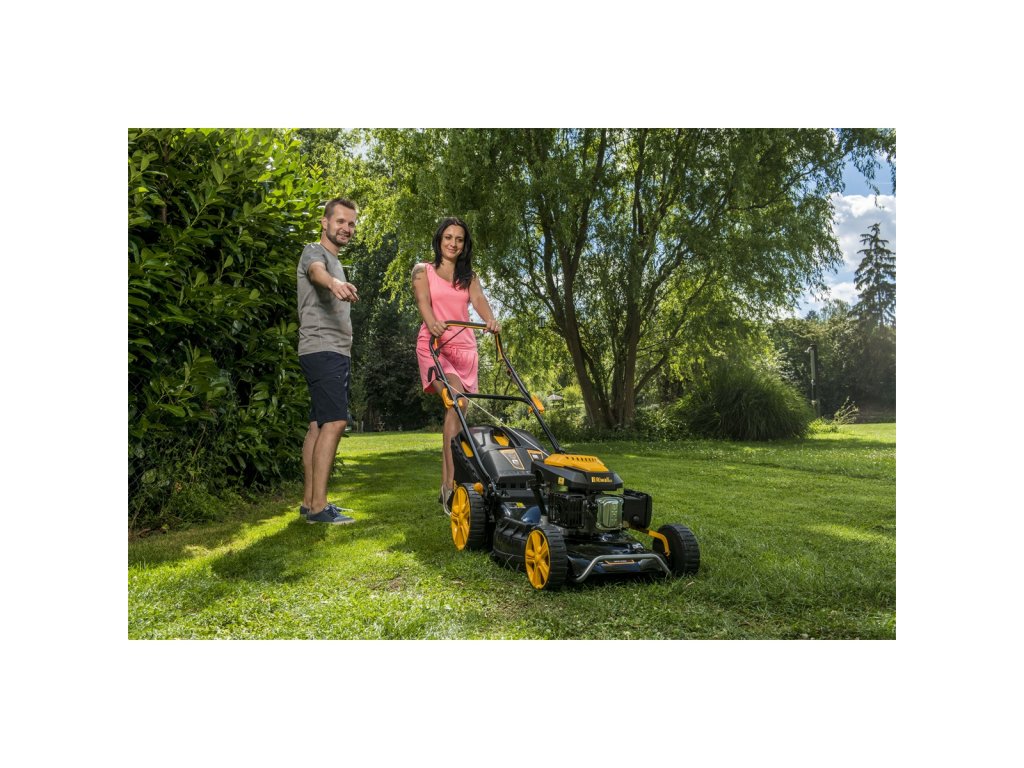 Riwall PRO RPM 5355 - multifunkční travní sekačka 4 v 1 s benzinovým motorem a pojezdem