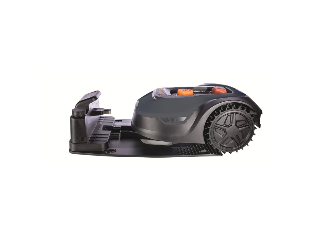 Na rozdíl od sekaček s tradičními uhlíkovými motory je RRM 950 APP vybavena bezuhlíkovým motorem PowerMax, který je nejen velmi tichý – sekačka dosahuje maximální hladiny hluku pouhých 62 dB – ale zároveň účinný a prakticky bezúdržbový. Díky silnému motoru, výkonnému akumulátoru a pojezdovým kolům se speciálním vzorkem zvládne bez problémů i svažitý terén se stoupáním až 20°. Baterie je složena ze značkových článků a osazena nejnovější elektronikou, která hlídá precizní dobíjení každého článku a zabraňuje přehřátí. Je dimenzována na dlouholetý provoz, a pokud je to nutné, můžete ji bez problémů vyměnit svépomocí. Díky vodotěsnosti na úrovni IPX5 není nutné umisťovat dokovací stanici pod stříšku. Ta je však doporučeným příslušenstvím, protože chrání stroj nejen před deštěm či kroupami, ale i před intenzivním slunečním zářením. Stříška se navíc snadno zasune do integrovaných otvorů v nabíjecí stanici.