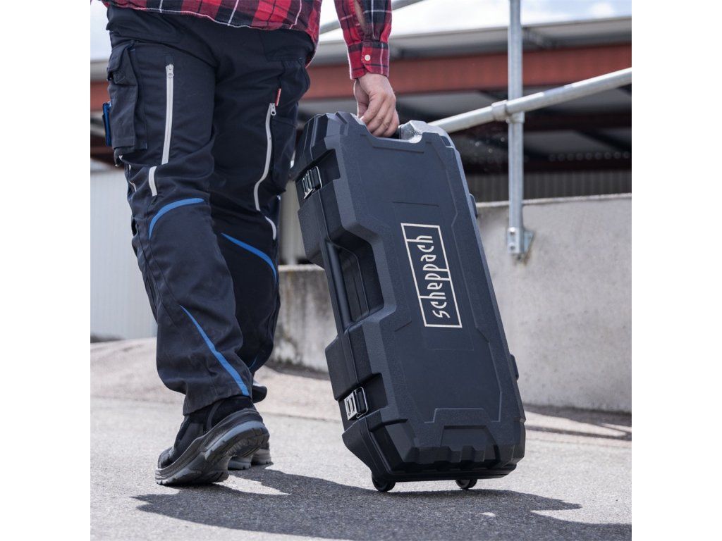 Přístroj je vybaven 4 m dlouhým přívodním kabelem a dodává se v robustním kufru s kolečky. Kladivo je v základní výbavě dodáváno s bohatým příslušenstvím.