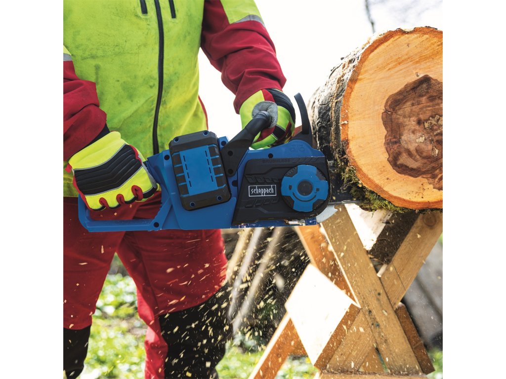 Moderní bezuhlíkový motor (Brushless motor) nabízí vysokou účinnost, delší výdrž baterie, dlouhou životnost a minimální opotřebení. Funkce Soft-start chrání motor a umožňuje jeho hladké spuštění. Automatické mazání řetězu, integrovaná ochrana proti přetížení a indikátor stavu oleje zvyšují spolehlivost a prodlužují životnost pily. Stroj je plně kompatibilní se všemi akumulátory a nabíječkami řady Scheppach IXES 20V, které nabízí maximální flexibilitu a pohodlí bez kabelů. V tomto případě jsou k provozu nutné 2 baterie.