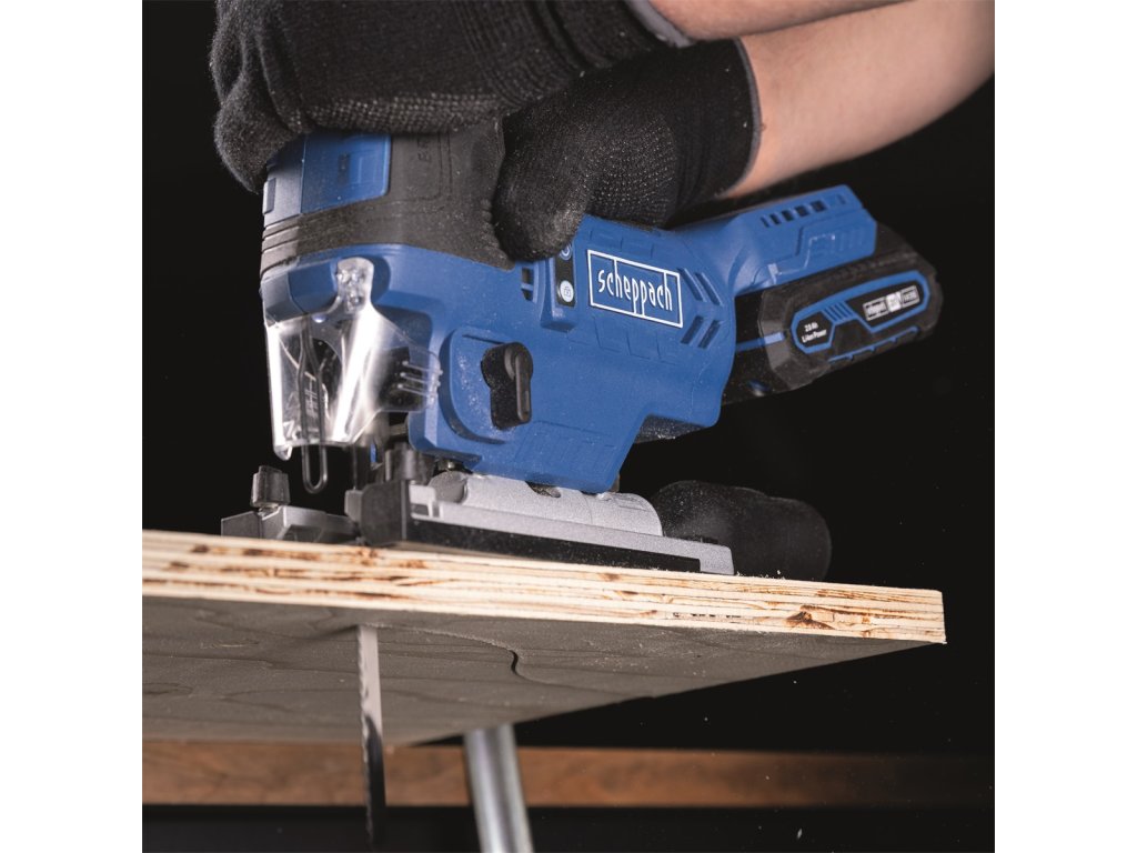 Aku přímočará pila Scheppach BC-JS254-X je ideální volbou pro přesné řezání různých materiálů, jako je dřevo, kov, hliník, mosaz, plast a další – stačí zvolit vhodný pilový list.Konstrukce pily umožňuje řezat v mnoha různých úhlech, provádět dlouhé paralelní řezy nebo obloukové řezy. Stroj má snadné jednoruční ovládání, elektronické nastavení rychlosti, funkci ofukování pracovního prostoru, LED osvětlení pracovního prostoru s 10 s prodlevou po vypnutí stroje a 3-stupňové nastavení předkmitu pro nastavení výkonu řezání a jeden stupeň pro jemné řezání. Čistotě řezu napomáhá, vedle kvalitních pilových plátků, i integrovaná ochrana proti otřepům. Kvalitní základová deska má kluznou desku, která chrání citlivý povrch před poškrábáním. Navíc se dá lehce nastavit v 5 stupních pro pokosové řezání v rozmezí od -45° do +45°. Výměna pilového plátku je rovněž velice snadná, díky systému rychloupínání. Transparentní sklápěcí kryt chrání uživatele a zároveň umožňuje volný výhled na pracovní plochu. Rukojeť má komfortní protiskluzové zóny. Stroj se dodává bez baterie a nabíječky. Stroj se dodává bez baterie a nabíječky.