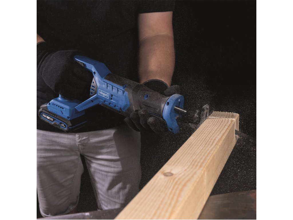Scheppach BC-RS250-X je výkonná akumulátorová pila ocaska, která je ideálním řešením pro snadné a efektivní řezání dřeva, plastů, neželezných kovů a stavebních materiálů (s použitím vhodného pilového listu).Díky nastavitelné rychlosti zdvihu (0–3000 otáček za minutu) a délce zdvihu 28 mm si pilka snadno poradí s různými materiály a náročnými aplikacemi. Výměna pilového listu je otázkou okamžiku díky rychloupínacímu systému, který nevyžaduje žádné nástroje. Kompaktní ergonomický design s měkčenou protiskluzovou rukojetí zaručuje pohodlné a bezpečné ovládání i při delší práci. Nastavitelná opěrná deska chrání pracovní povrch, prodlužuje životnost pilového listu a zároveň umožňuje upravit hloubku řezu podle potřeby. Integrované LED osvětlení s funkcí dosvitu po vypnutí (zpoždění 10 s) dokonale osvětlí řeznou linii, což oceníte zejména při práci ve špatných světelných podmínkách. Stroj se dodává bez baterie a nabíječky.
