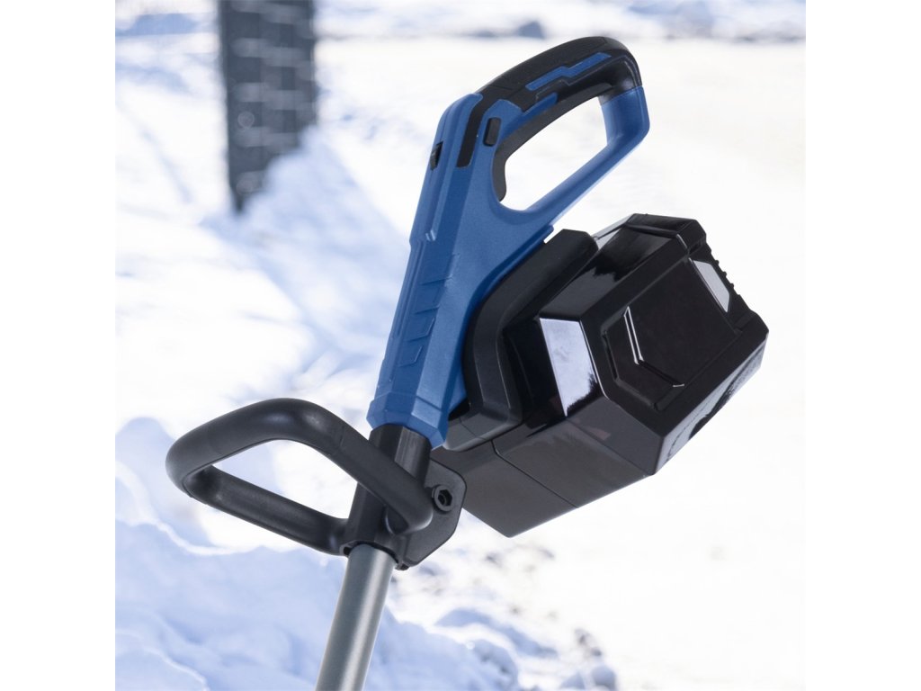 Výkonná akumulátorová sněhová fréza Scheppach BC-SNB410-X je ideálním pomocníkem v zimě, ať už potřebujete odklidit sníh z příjezdové cesty, dvora nebo chodníku. Díky provozu bez kabelu je práce s frézou pohodlná a snadná.Stroj umožňuje nastavení směru vyhazování sněhu vlevo, vpravo nebo přímo vpřed. Rychlost můžete upravovat v šesti úrovních podle hloubky a typu sněhu. Maximální pracovní šířka je 40 cm a fréza zvládne odklidit až 20 cm vysokou vrstvu čerstvého sněhu. Pro bezpečné používání je fréza vybavena bezpečnostním spínačem, který zamezuje nechtěnému spuštění. Zatímco hlavní ergonomická rukojeť s měkkým protiskluzovým povrchem zajišťuje pohodlné ovládání, další přídavná umožňuje práci oběma rukama. Fréza se navíc snadno přenáší díky integrovanému madlu a je i samostatně stojící, což usnadňuje její skladování. S maximální vzdáleností vyhazování sněhu až 6 metrů vám tato fréza značně usnadní úklidové práce. Stroj se dodává bez baterie a nabíječky.