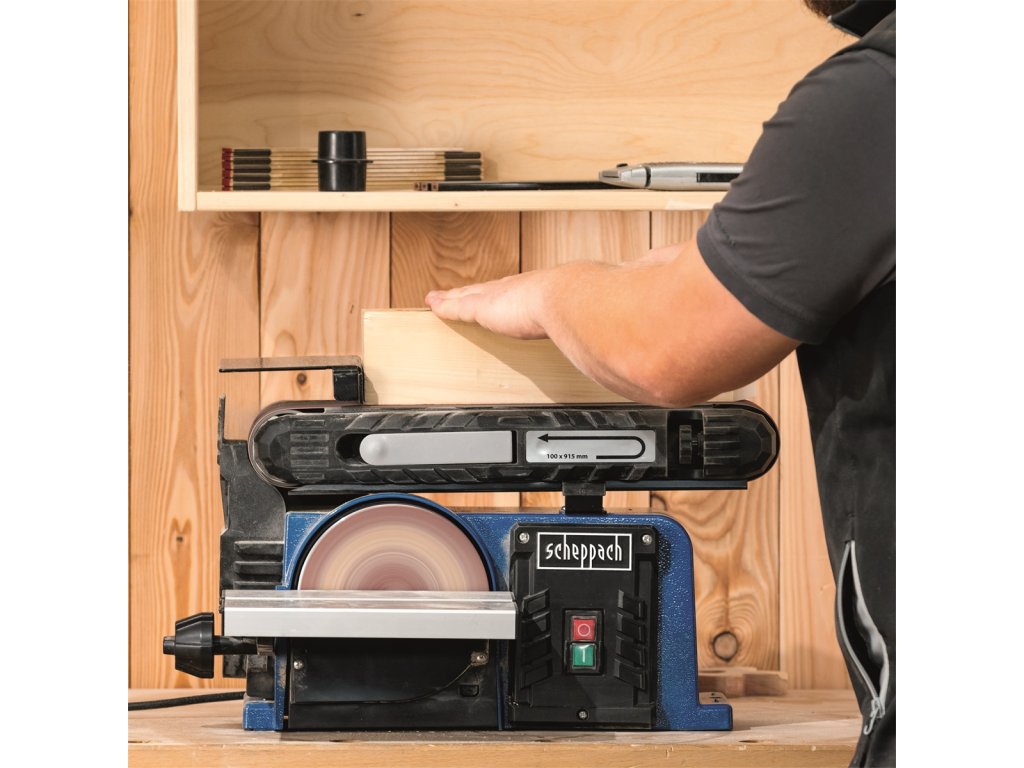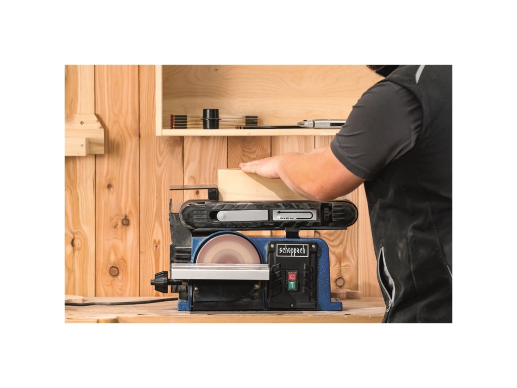 BTS 900 - multifunkční pásová a čelní bruskaMultifunkční bruska Scheppach BTS 900 dokáže díky spojení brusného pásu a klasické kotoučové brusky vyřešit všechny úkoly spojeném s broušením ve vaší dílně. Brusný papír se na kotoučovou brusku přidělává jednoduše pomocí suchého zipu. Důležitý faktem je, že kotoučová bruska nepřesahuje svým obrysem přes hranu brusného pásu, takže na pásu můžete brousit i obrobky s velkou plochou. Výsledek je pak vždy vynikající.