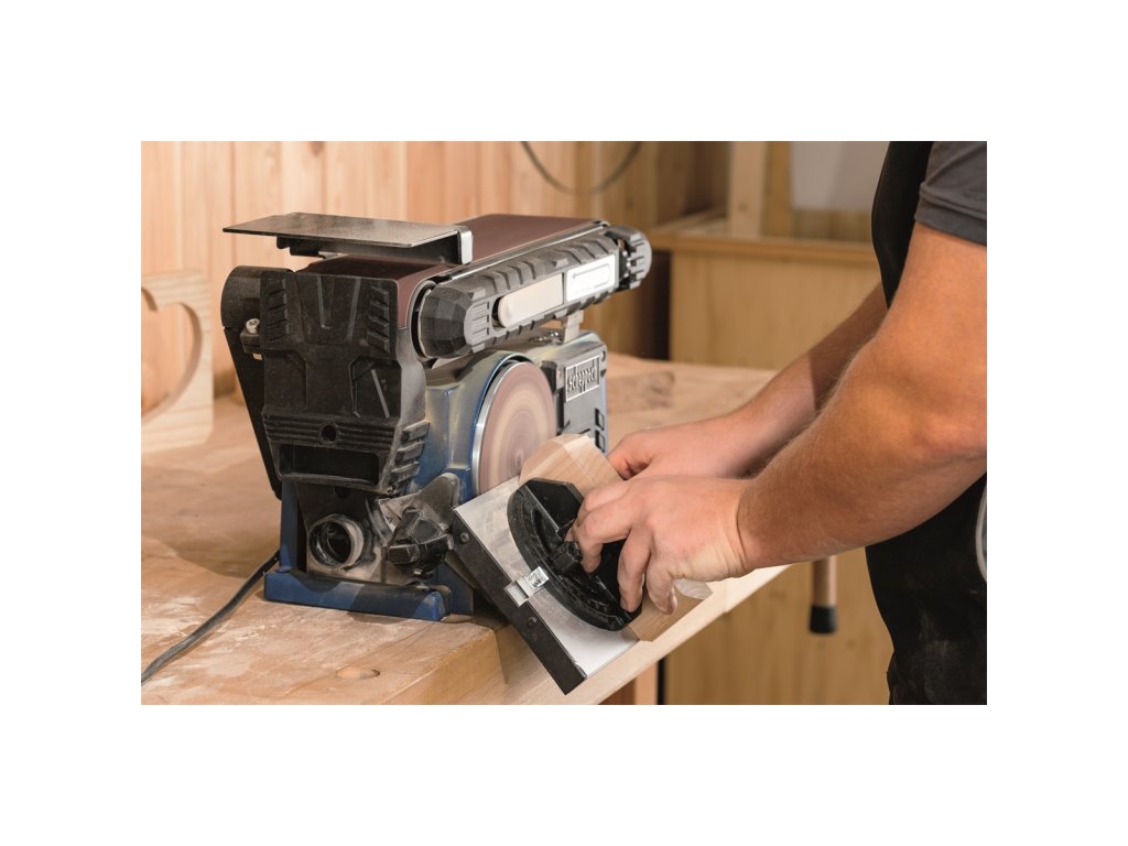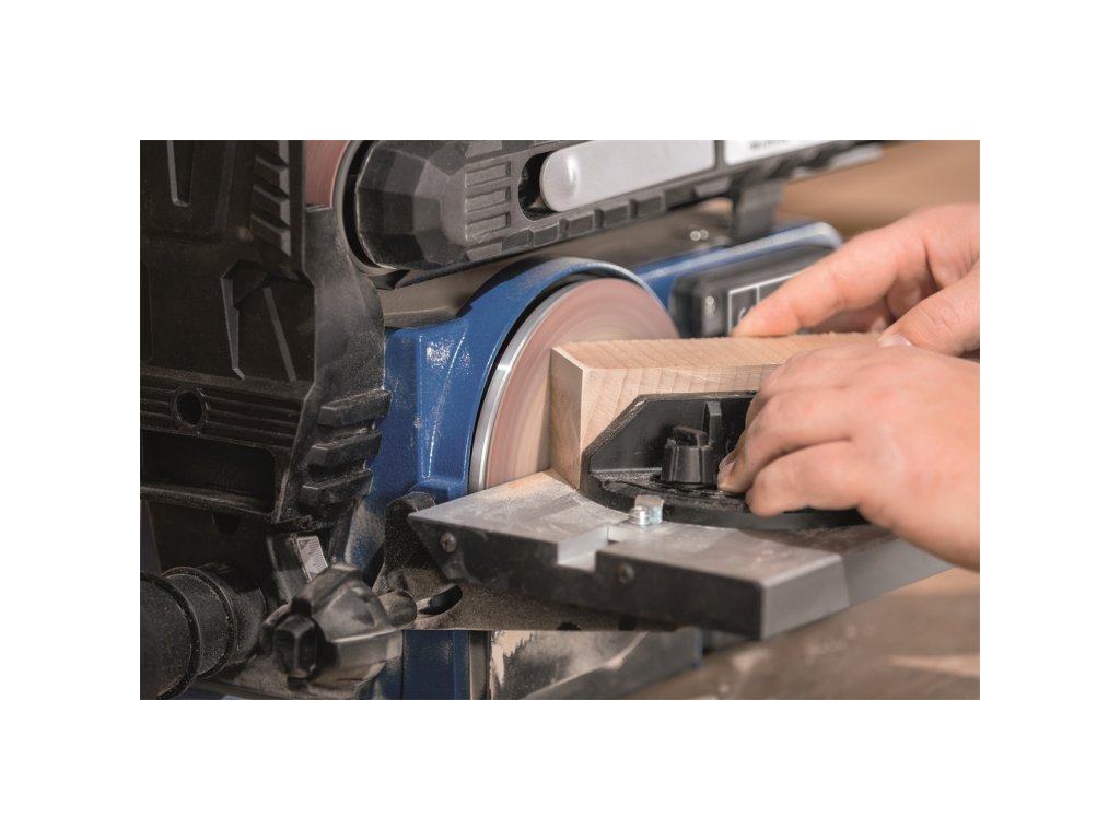 Největší výhodou celého systému je však jeho variabilita. Celá jednotka s brusným pásem se může naklopit o 90° z horizontální až do vertikální polohy. Přídavný stolek s úhlovým pravítkem se jednak může sklopit v rozmezí 45° nebo může být posunut na zadní stranu stroje a využit i pro broušení na pásové brusce. Stroj je vybaven odsávacím nástavcem a podstavec je vybaven otvory pro připevnění stroje k pracovní desce.