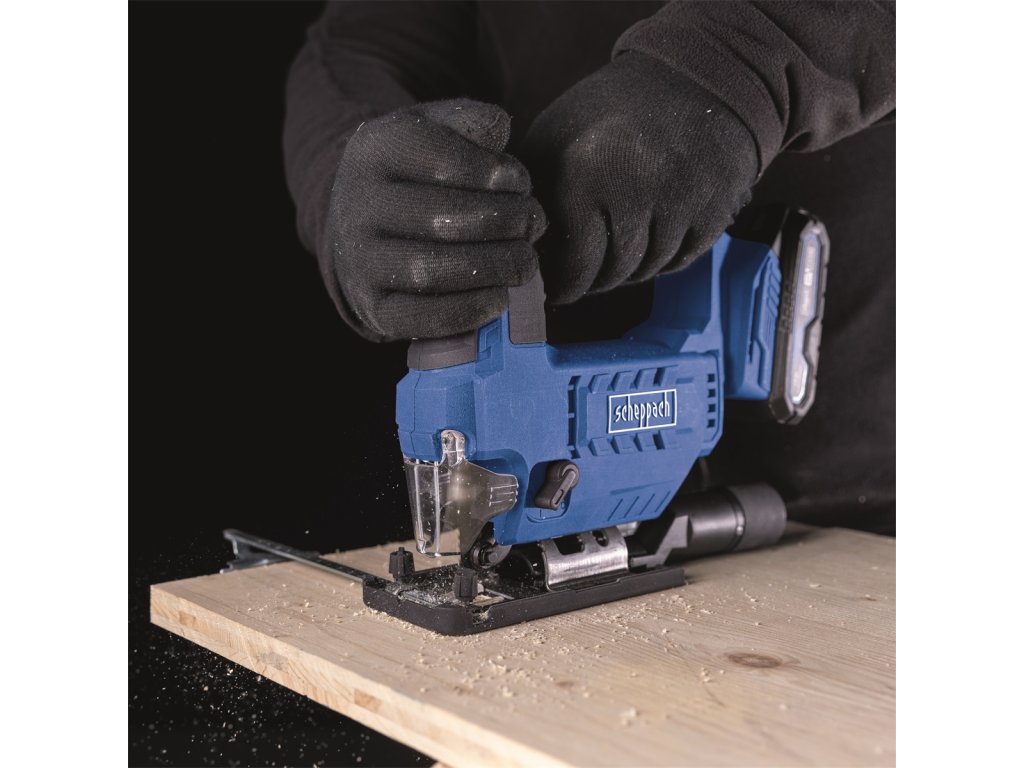 Scheppach C-JS220-X je výkonná aku přímočará pila, vhodná na řezání plastů, kovových materiálů a dřeva. Konstrukce pily umožňuje řezat v mnoha různých úhlech, provádět dlouhé paralelní řezy nebo obloukové řezy.Pila má snadné jednoruční ovládání, elektronické nastavení rychlosti, LED osvětlení pracovního prostoru a 3-stupňové nastavení předkmitu pro nastavení výkonu řezání a jeden stupeň pro jemné řezání. Čistotě řezu napomáhá i integrovaná ochrana proti otřepům. Kvalitní základová deska má kluznou desku, která chrání citlivý povrch před poškrábáním. Navíc se dá lehce nastavit v 7 stupních pro pokosové řezání v rozmezí od -45° do +45°. Rovněž výměna pilového plátku je snadná, díky systému rychloupínání. Transparentní sklápěcí kryt chrání uživatele a zároveň umožňuje volný výhled na pracovní plochu. Rukojeť má komfortní protiskluzové zóny. Stroj se dodává bez baterie a nabíječky.