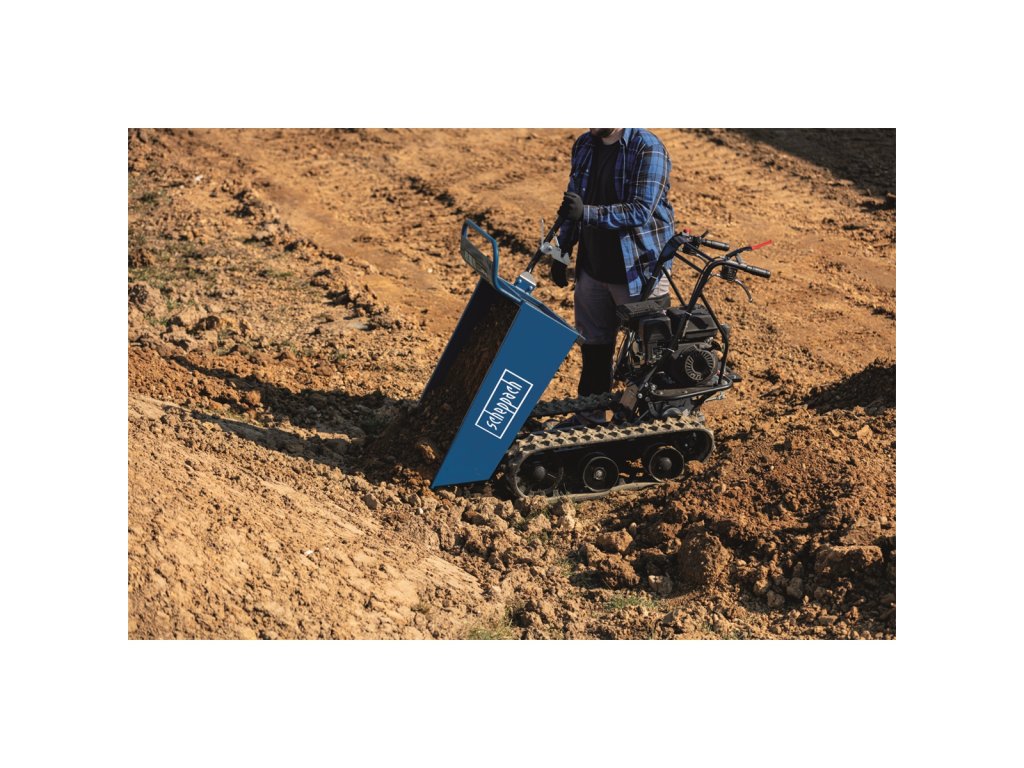 DP 4500 - pásový přepravník 400 kg s mechanickým sklápěním korbyPásový přepravník Scheppach DP 4500 Vám umožní velmi pohodlnou přepravu až 400 kg sypkých i pevných materiálů i na velmi špatně přístupných místech, a to i v kluzkém či blátivém terénu. Skvěle se hodí na přepravu zeminy, písku, štěrku, kamenů, dlažby, cihel, ale třeba i dřeva nebo trávy. Hojně se využívá na staveništích, při demolicích či rekonstrukcích objektů, při výkopových pracích, v zemědělství, zahradnictví, lesnictví ap. Výhodou je nejenom větší bezpečnost a průchodnost i v těžším terénu, ale i výrazně vyšší produktivita práce oproti běžným manuálním přepravním prostředkům. Pohon pásy zaručuje skvělou průchodnost i velkou svahovou dostupnost, přičemž šířka pásů přispívá i k ochraně podkladu. Obsluha všech ovládacích prvků je velmi jednoduchá. Páčkami na rukojeti snadno řídíte otáčení, brzda se aktivuje automaticky při uvolnění páky spojky a rovněž páka řazení třístupňové převodovky je ve snadném dosahu obsluhy. Pro pohon je použit velmi oblíbený motor Loncin s vysokým výkonem 5,6 HP, který patří k nejoblíbenějším a nejspolehlivějším pohonným jednotkám vůbec.Podmínky prodloužené záruky naleznete zde.Případné bezpečnostní pokyny, výstrahy a upozornění jsou součástí návodu k obsluze, který je k dispozici v sekci KE STAŽENÍ.