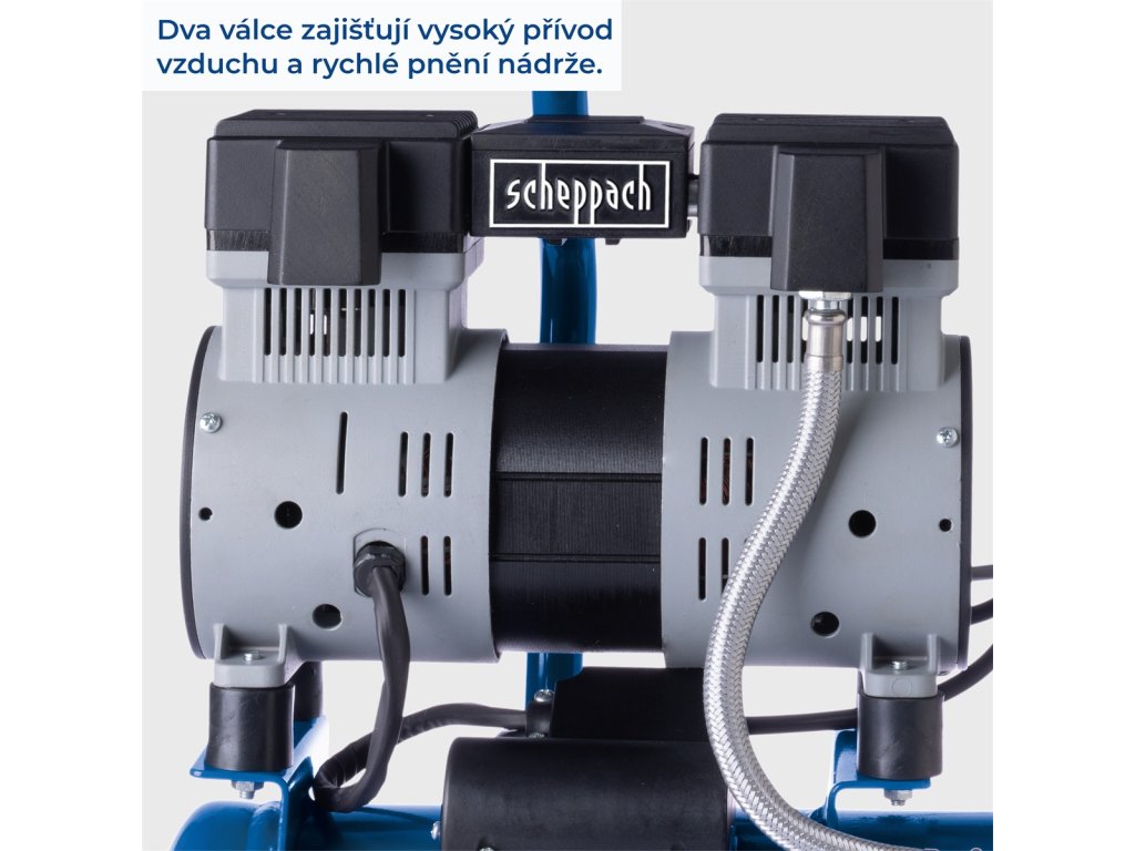 Scheppach HC 08 Si - ultra tichý bezolejový dvouválcový kompresor 6 l