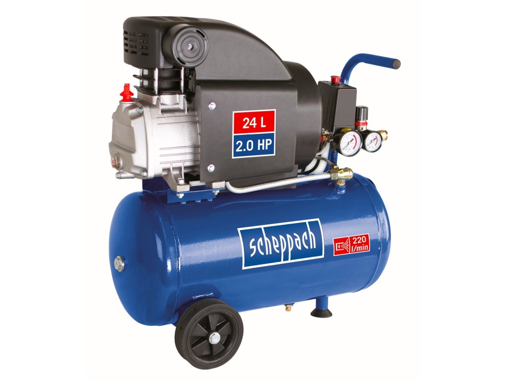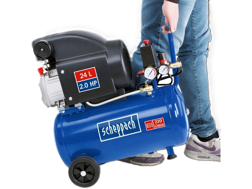HC 25 - olejový kompresor 24 lKompresor Scheppach HC 25 je nezbytným pomocníkem, který by neměl chybět v žádné domácí dílně. Pumpa stroje je u tohoto kompresoru mazána olejem, což prodlužuje životnost celého stroje i při častém používání. Kontrola oleje je velmi jednoduchá a provádí se zběžným pohledem pomocí optického ukazatele umístěném na stroji. Vzdušník slouží jako zásobárna stlačeného vzduchu a motor se tak zapíná jen v případě, že tlak vzduchu klesne pod požadovanou úroveň. Díky vzdušníku můžete s kompresorem provádět i náročnější operace, než je běžné huštění či ofukování. Můžete k němu připojit třeba sponkovačku nebo zvládne i méně náročné práce se stříkací pistolí a dalšími pneumatickými nástroji. Při dofukování pneumatik zase oceníte jednoduché nastavení výše tlaku, který můžete snadno kontrolovat pomocí vestavěného manometru. Přídavná rukojeť a kolečka umožní snadnou manipulaci se strojem. Stroj je díky svým kompaktním rozměrům velmi skladný a dá se snadno převážet.