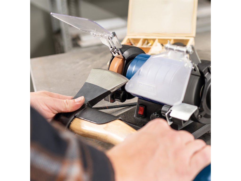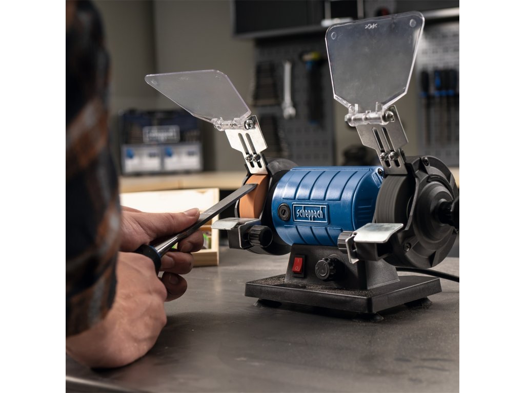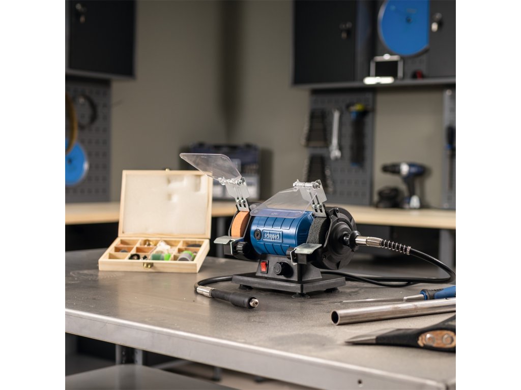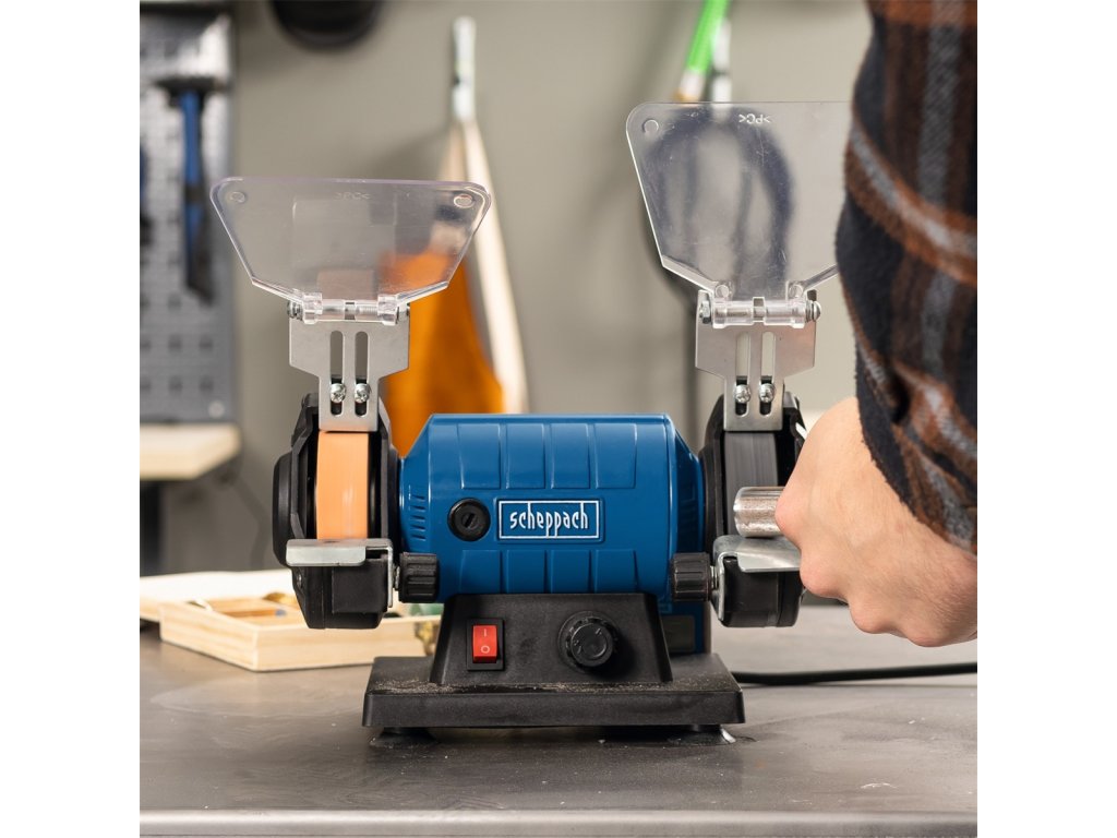 Skvělá víceúčelová bruska/leštička Scheppach HG 35 je neocenitelným pomocníkem pro každého kutila. Díky ní zvládnete velké množství různých úkonů jen s jedním strojem.Základem je jeden brusný kotouč o zrnitosti 120 a jeden leštící kotouč o zrnitosti 400. Obě pracoviště jsou vybavena transparentní ochranou očí proti odlétávajícím zbytkům a opěrnou částí pro opracovávaný obrobek. Poctivé tělo brusky, antivibrační uložení a nastavitelná rychlost otáček od 0 do 11000 ot./min. jsou zárukou profesionálních výsledků.