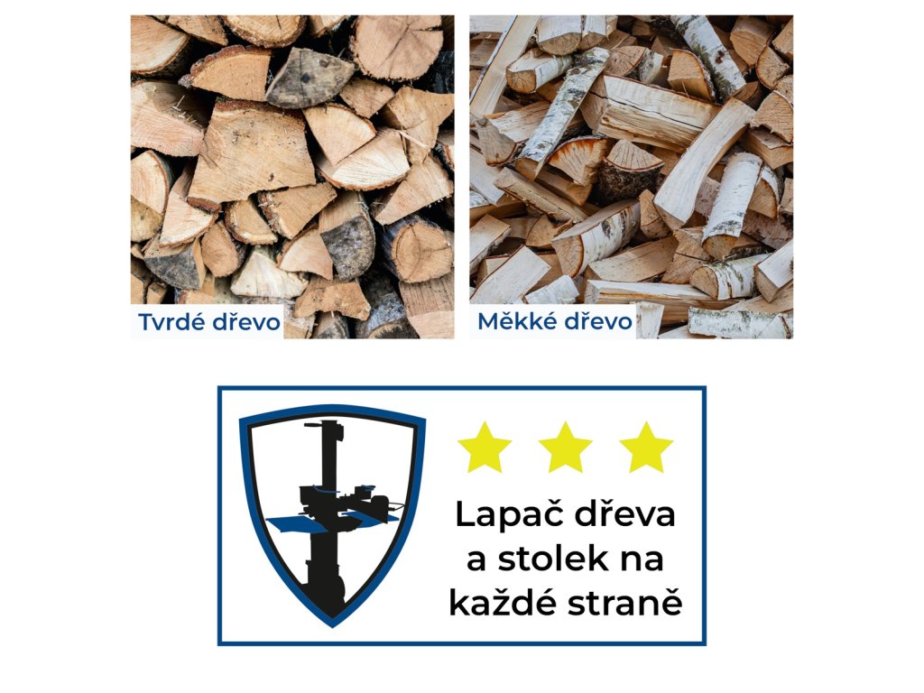 Ke stroji lze také dokoupit přídavný rozšiřovací nebo čtyřramenný klín, které výborně poslouží na dělení silnějších nebo dlouhých polen.