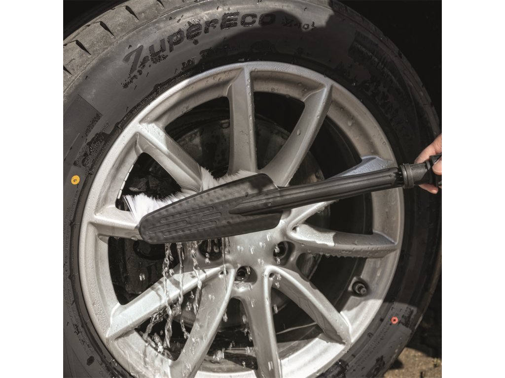 Výbava: 5 m tlaková hadice, nádržka na saponát s tryskou, čistič ploch, tlaková pistole s tryskou a prodlužovacím nástavcem, turbo tryska, rovný kartáč, vstupní filtr.