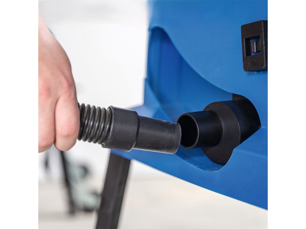 Praktickým bonusem je také integrovaný otvor pro připojení odsavače pilin, díky kterému udržíte pracovní prostor čistší a přehlednější. Stabilitu při práci zajišťuje robustní základna z masivního ocelového plechu s výškou 880 mm, která zároveň podporuje ergonomický pracovní postoj.