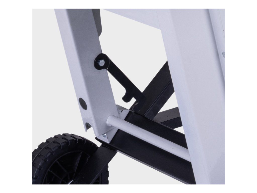 Pila má robustní transportní kola, je kompaktní a nezabere mnoho místa. Její svařovaná konstrukce je však velmi pevná a odolná proti překlopení - tyto vlastnosti vychází z designu profesionálních pil Scheppach. Svařované ocelové profily, ošetřené kvalitním práškovým lakováním, jsou velmi stabilní v krutu a celá pila je dimenzována na dlouhý a bezstarostný provoz.