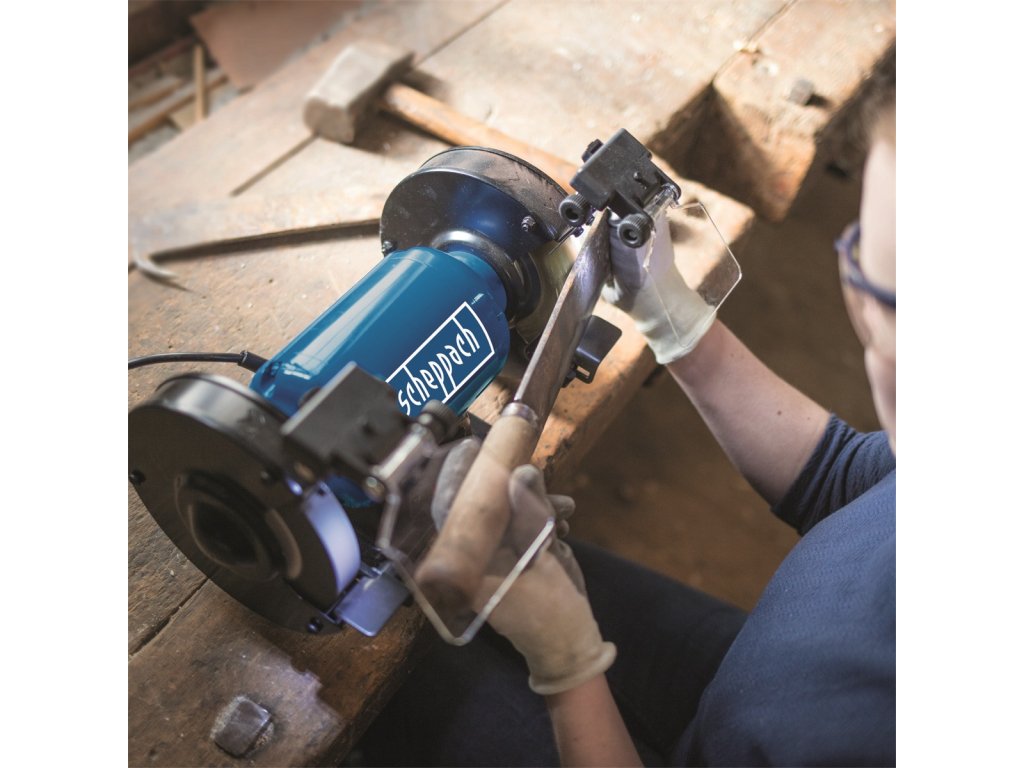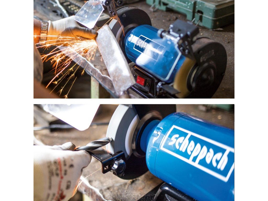 Základní model kotoučové brusky Scheppach SM 150 L nezklame ani náročnější hobby uživatele. Nabízí pevnou konstrukci, přesné vedení brusných kotoučů a tichý, výkonný a bezúdržbový indukční motor.Bruska je vybavena dvěma 150 mm kotouči s rozdílnou zrnitostí, které umožňují jemné i hrubší broušení. Snadno tak zvládne většinu běžných úkolů v dílně – od broušení přes leštění až po ostření nástrojů.