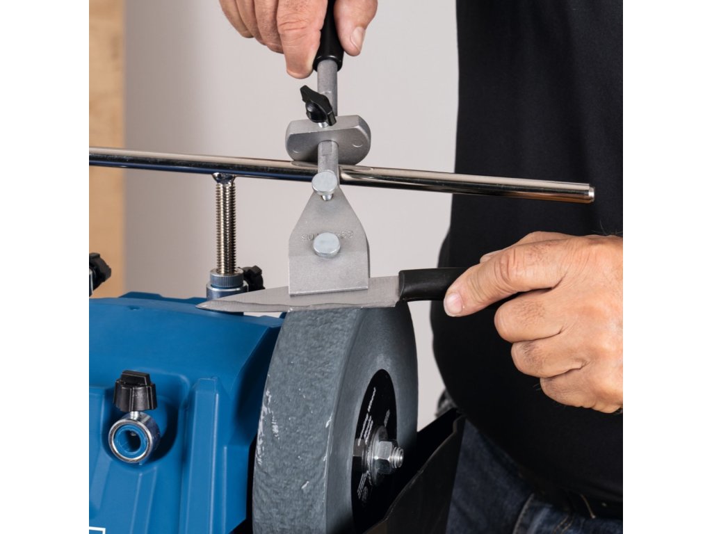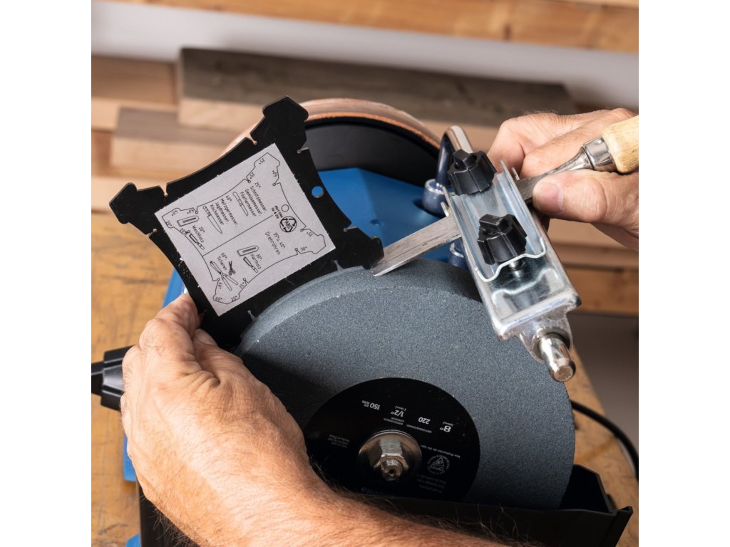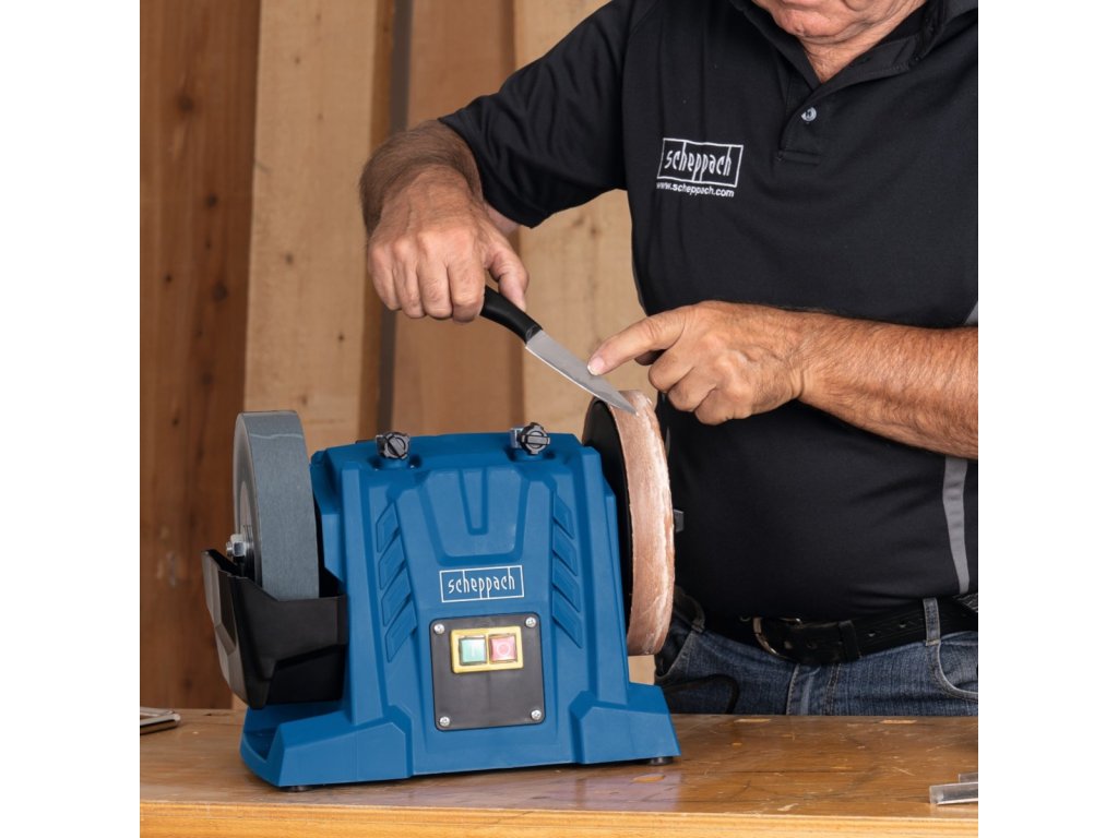 Brousicí systém Scheppach Tiger 5000 S je ideální zejména pro domácí dílny, ale uplatní se i v menších provozech, kde je potřeba mít nástroje vždy perfektně ostré. Díky jednoduchému ovládání a systému přípravků dokáže dosáhnout profesionálních výsledků i úplný začátečník, a uchrání tak drahé nástroje před poškozením.Základem kvalitního ostří je široký brusný kámen o průměru 200 mm s mikročásticemi oxidu hlinitého, díky kterým lze brousit i nástroje z tvrdokovu. Pro finální úpravu a zahlazení mikrootřepů slouží vyměnitelný honovací kožený kotouč.