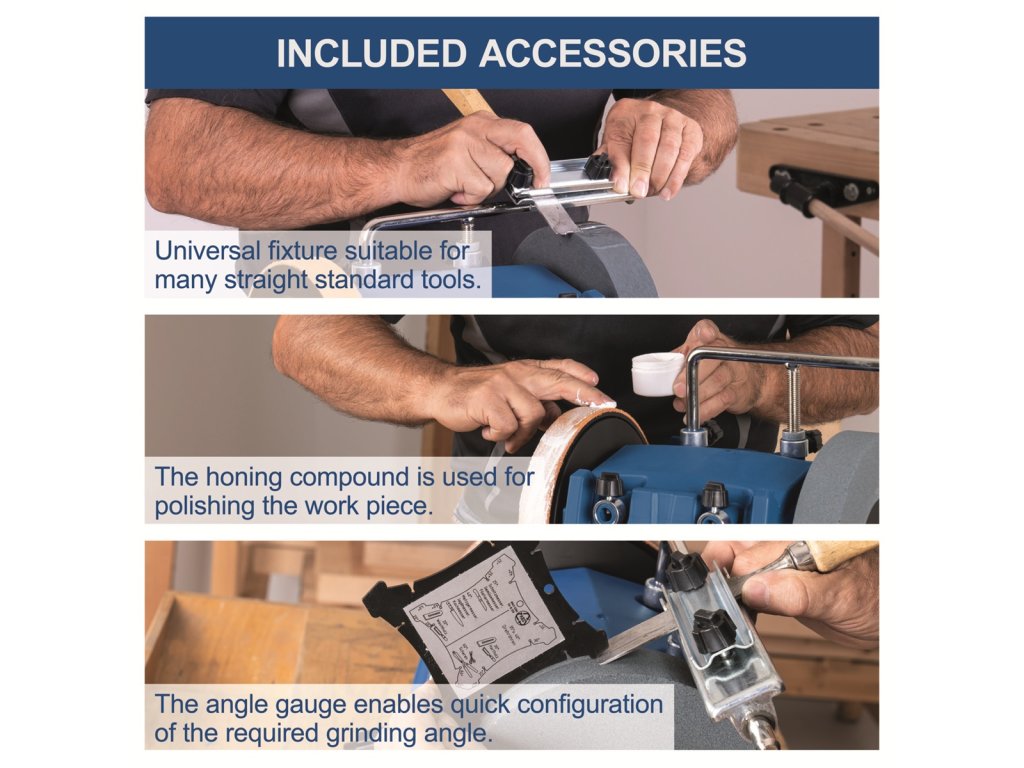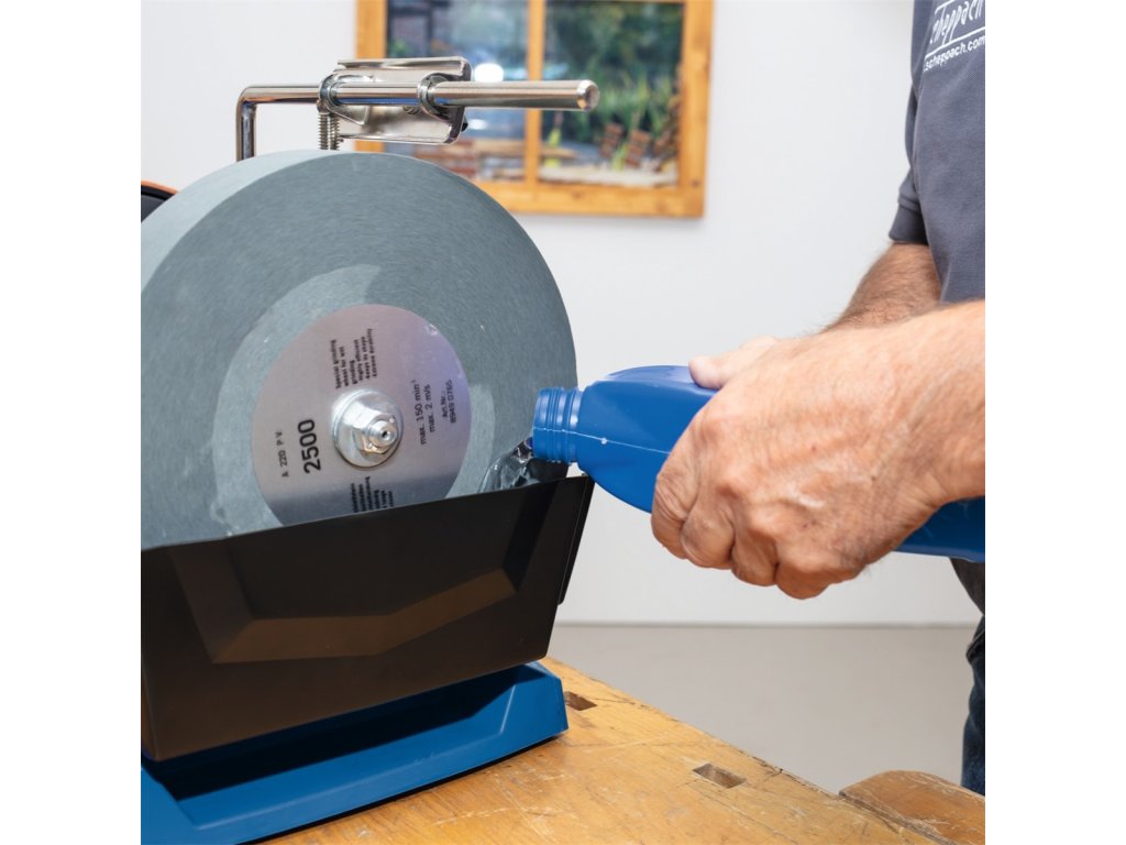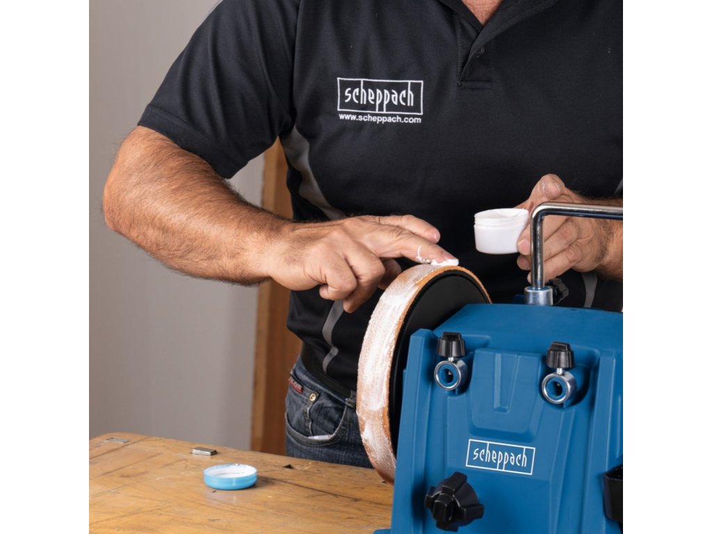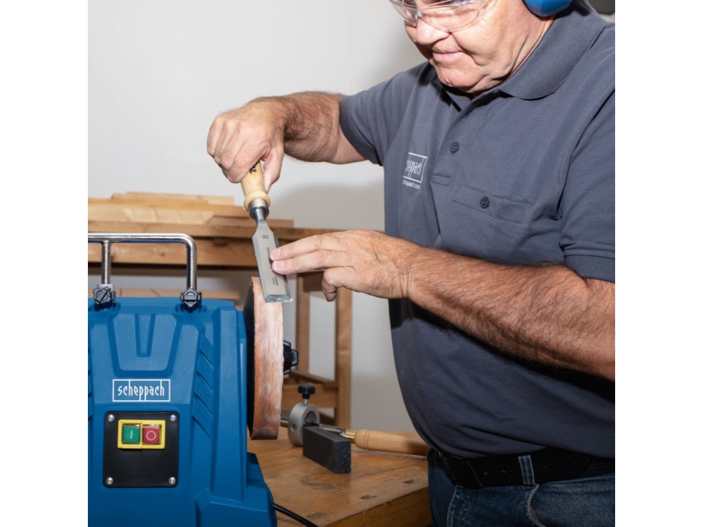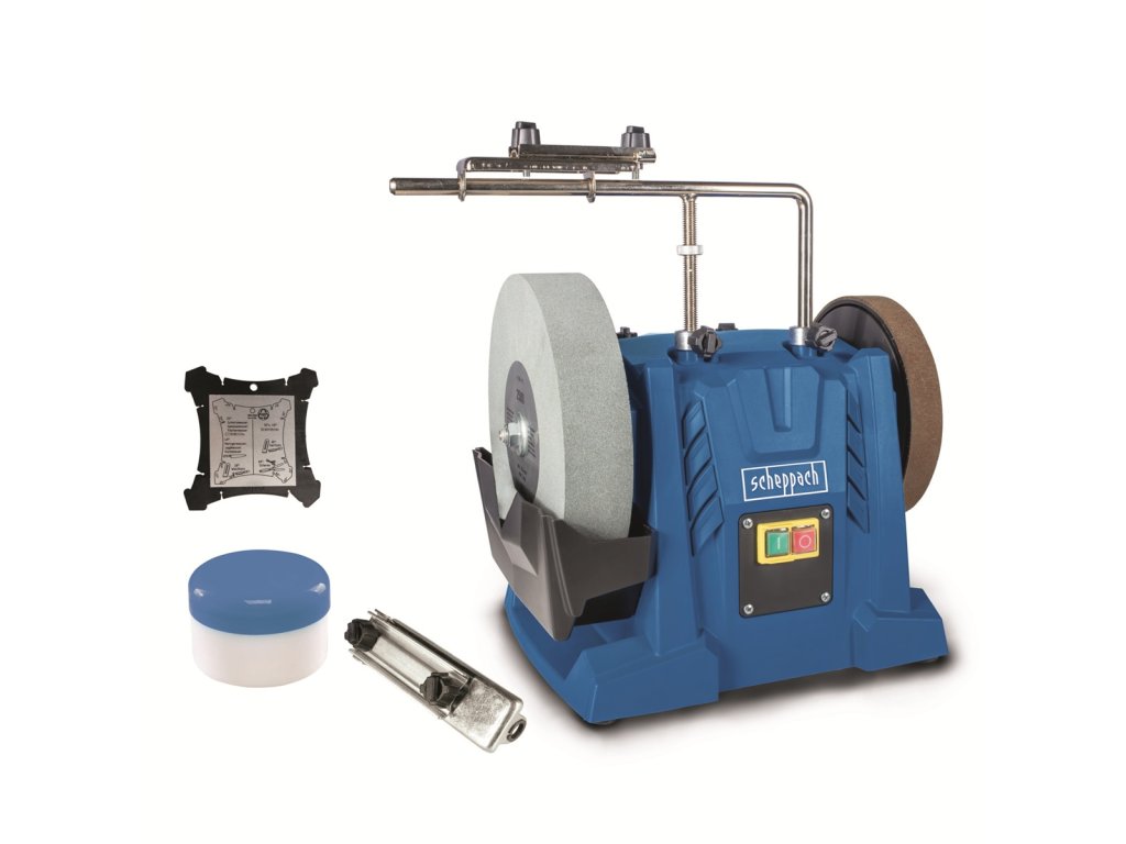 Profesionální brousicí systém Scheppach Tiger 7000 S se hodí jak do domácích dílen, tak i do menších provozů, kde je potřeba mít nástroje vždy perfektně ostré. Díky jednoduchému ovládání a systému přípravků dokáže nástroj dokonale nabrousit i úplný začátečník, a uchrání tak drahé vybavení před poškozením.Základem kvalitního ostří je široký brusný kámen o průměru 250 mm, který obsahuje mikročástice oxidu hlinitého. Díky tomu zvládne kromě běžných materiálů i broušení tvrdokovových nástrojů. K finální úpravě a zahlazení mikrootřepů slouží vyměnitelný honovací kožený kotouč.