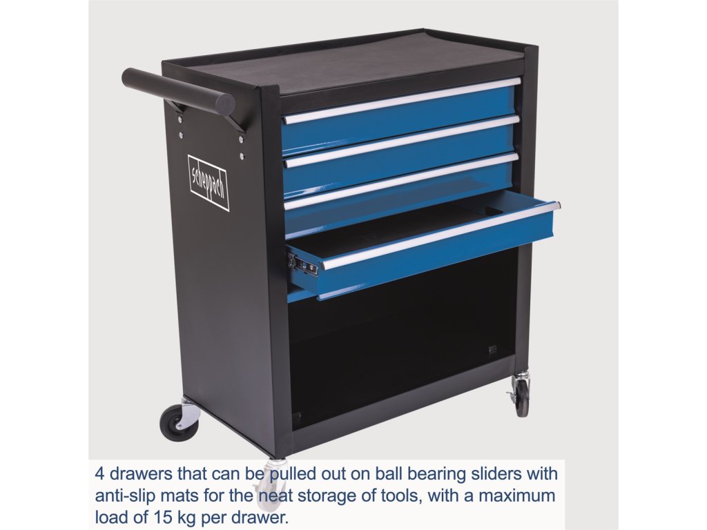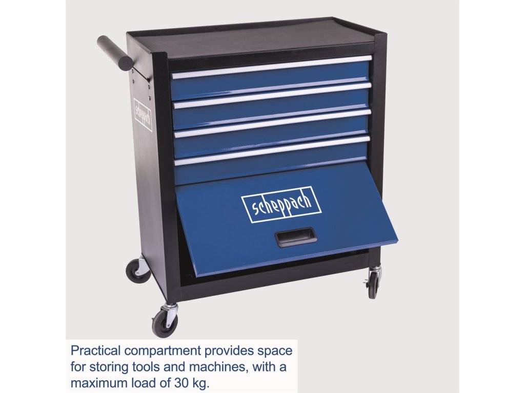 TW 1300 - dílenský vozík s nosností 120 kgScheppach TW 1300 je kompaktní celokovový dílenský vozík vhodný i do menších domácích dílen nebo garáží. Je to vynikající pomocník pro přehledné skladování nářadí a strojů. Vyznačuje se tuhou konstrukcí a mnoha příjemnými drobnostmi, zvyšujícími komfort užívání. Odkládací pracovní deska je z odolného plastu, má protiskluzovou vložku a nízký ochranný lem, který udrží vaše nářadí i drobné díly a šroubky vždy na místě. Pro snadnou manipulaci s vozíkem slouží velké transportní madlo a čtyři velká kola s hladkým chodem. Ty jsou pogumovaná, plně otočná a dvě z nich mají integrovanou brzdu. Dobrou kvalitu poznáte i podle snadné manipulace se zásuvkami. Každá má nosnost 15 kg a jsou vybaveny kvalitními pojezdy s kuličkovými ložisky, takže se s nimi snadno manipuluje i při plném zatížení. Navíc umožňují výsuv až na 95% délky zásuvky a mají pojistku proti nechtěnému vysunutí. Dno každé zásuvky je opatřeno protiskluzovou podložkou. Spodní velký úložný prostor, vhodný pro uložení větších strojů a nářadí, má nosnost 30 kg a je snadno přístupný vyklápěcími dvířky. Celková nosnost vozíku včetně horní police je skvělých 120 kg.Případné bezpečnostní pokyny, výstrahy a upozornění jsou součástí návodu k obsluze, který je k dispozici v sekci KE STAŽENÍ.