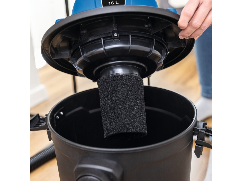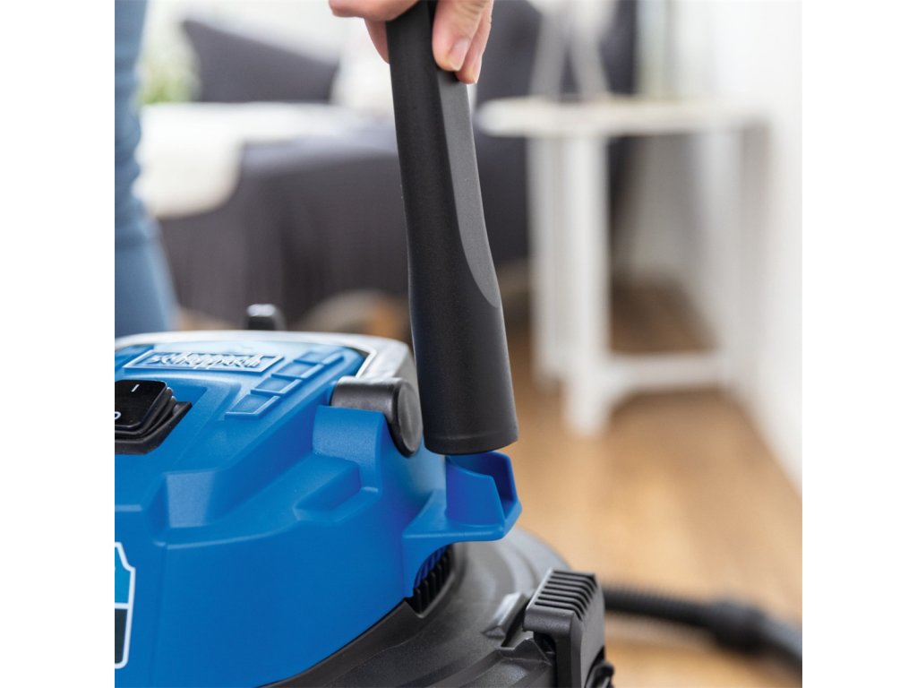 Scheppach VC 16 je kompaktní a výkonný pomocník, který zvládne jak suché nečistoty, tak i rozlitou vodu. Tento univerzální vysavač s výkonem 1 200 W a sacím tlakem 20 kPa si hravě poradí s úklidem dílny, garáže i domácnosti. Díky funkci foukání jej navíc využijete i pro odstranění nečistot z pracovního stolu, vyfoukávání prachu z těžko přístupných míst nebo pro rychlé sušení menších ploch.Odolná, nerozbitná plastová nádoba o objemu 16 litrů je vybavena praktickým rychloupínacím zámkem, který umožňuje snadnou výměnu sáčku. Velký pracovní dosah zajišťuje třímetrový napájecí kabel a 1,8 m dlouhá hadice, takže se pohodlně dostanete i do vzdálenějších koutů.