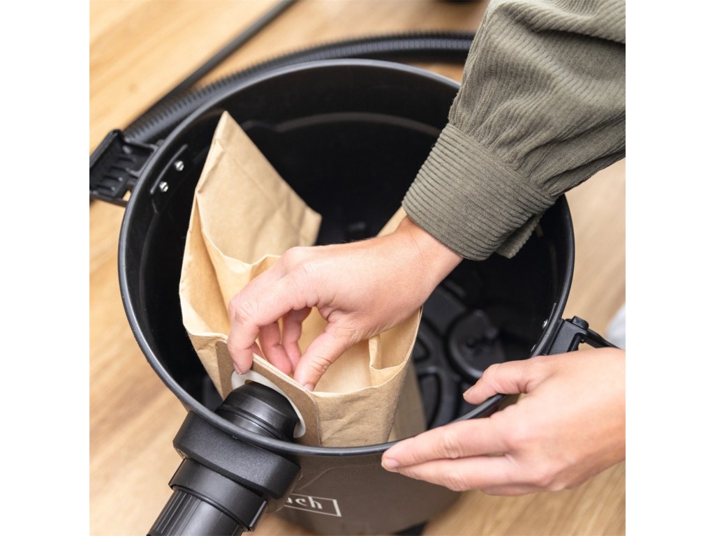 Součástí balení je 1,8 m sací hadice, tři 33cm plastové trubice, papírový sáček s FSC certifikací, pěnový filtr, štěrbinová hubice a podlahová hubice – vše, co potřebujete pro dokonalý úklid bez kompromisů.