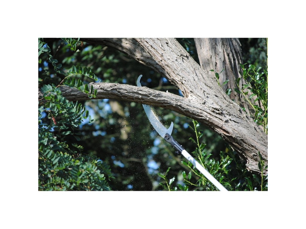 Dva srpky umístěné na koncích čepele spolupracují pro optimální výsledek. Horní srpek Vám pomůže udržet čepel v řezu. Mimo to ho ale můžete použít i k odřezávání malých větviček z kmene nebo k vytrhávání malých (mrtvých) větví ze stromu. Spodní srpek je pak uzpůsoben k podřezávání kůry, aby se při pádu větev neodtrhla od kmene a nepoškodila ho.