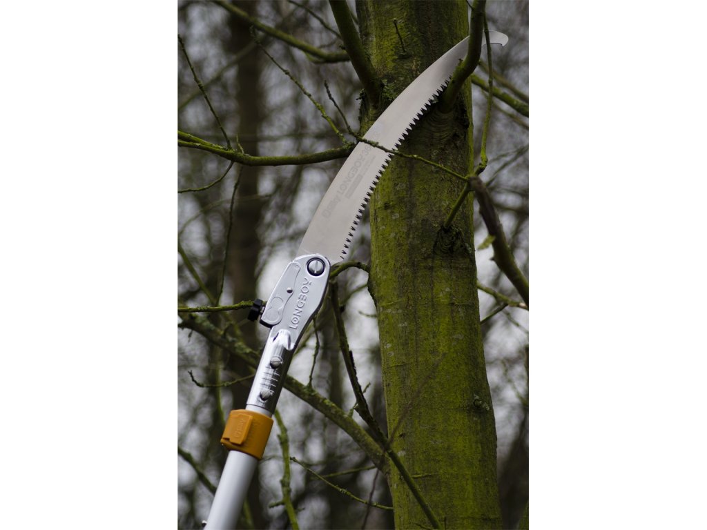 Pokud hledáte teleskopickou pilu, která se Vám vejde pohodlě do auta, pak je Longboy speciálně pro vás! Díky skládací čepeli má Longboy ve složeném stavu délku pouhých 145 cm. S pomocí přiloženého plastového krytu lze pak pilový list upevnit k násadě, čímž jste schopni tuto kompaktní vteleskopickou pilu bezpečně a snadno přenášet, přepravovat a skladovat. Čepel je konstruována tak, aby zabírala primárně v tahu, a proto má pila takový řezný výkon, že se i při delší práci nebudete cítit vyčerpaní. Využijte váhu kvalitního hliníkového těla a nechte pilu pracovat za Vás!Vlastnosti